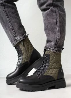 Αρβυλάκια με ύφασμα και καπιτονέ σχέδιο Refresh. Έχουν κορδόνια στη μπροστινή πλευρά. Ψηλή τρακτερωτή σόλα. Μεταλλικό στοιχείο στο πίσω μέρος. Peta-Vegan approved.