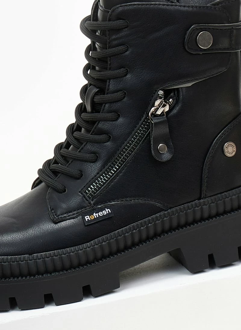 Αρβυλάκια REFRESH με μικρό διακοσμητικό φερμουάρ στην εξωτερική τους πλευρά.Έχουν ιδιαίτερο σχέδιο στη σόλα. Στρογγυλή γραμμή.Vegan approved.