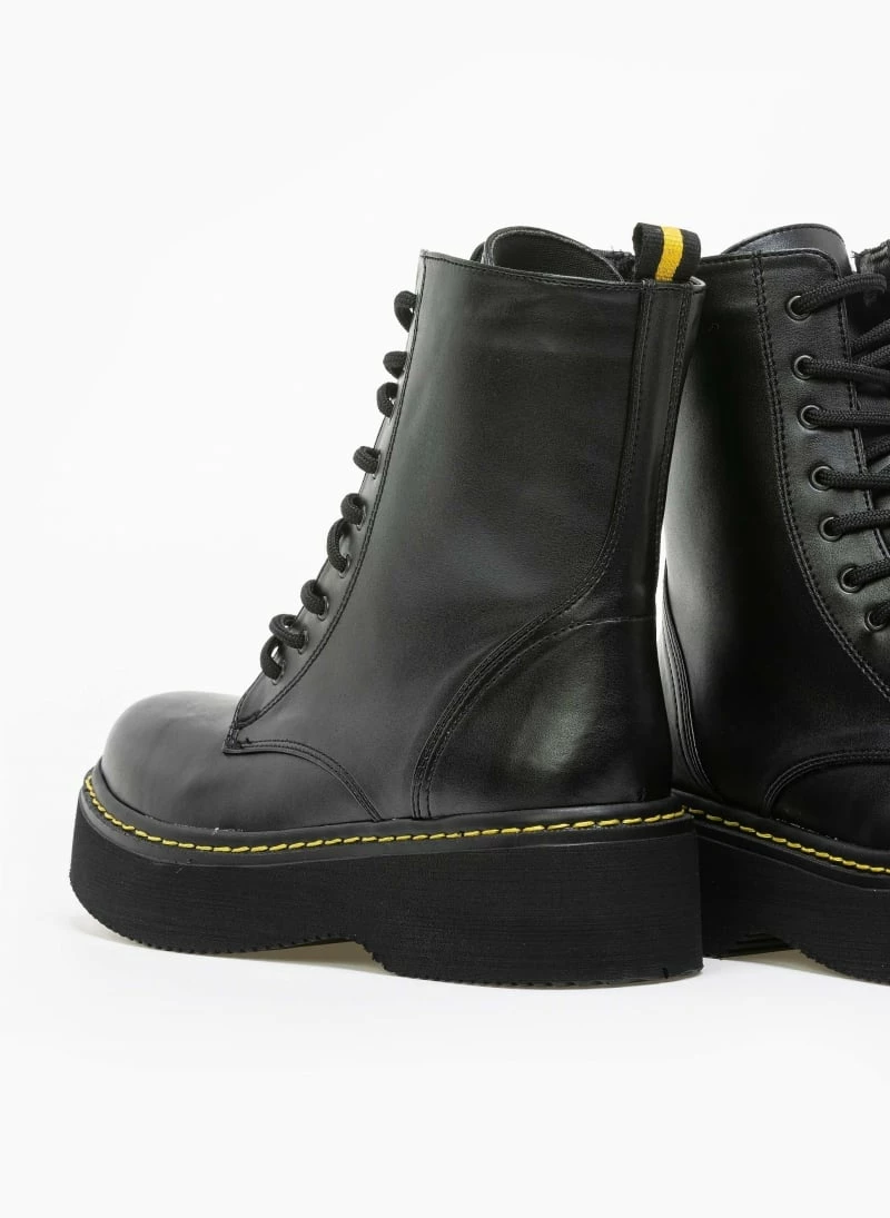 Estil combat μποτάκια. Έχουν διπλή σόλα με λεπτομέρεια κίτρινη ραφή. Ελληνικής κατασκευής.