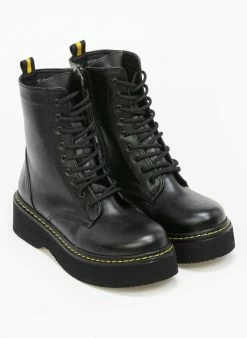 Φτηνός ✔️ Estil Combat μποτάκια με διπλή σόλα – Μαύρο 😉