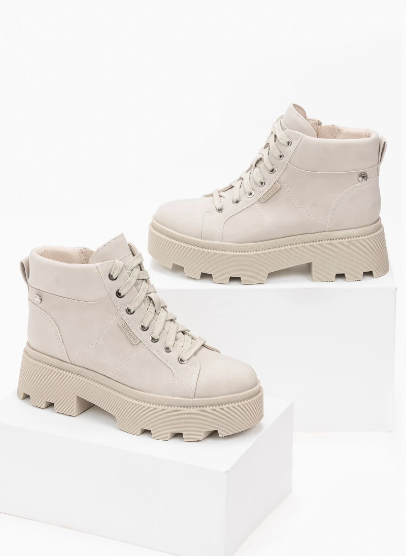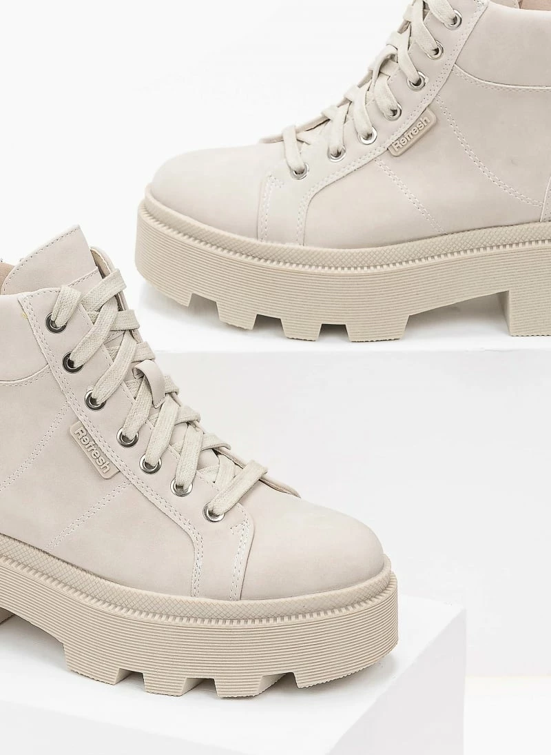 Αγορά 👏 Μποτάκια αστραγάλου με κορδόνια Refresh 76749 – Μπεζ ✔️