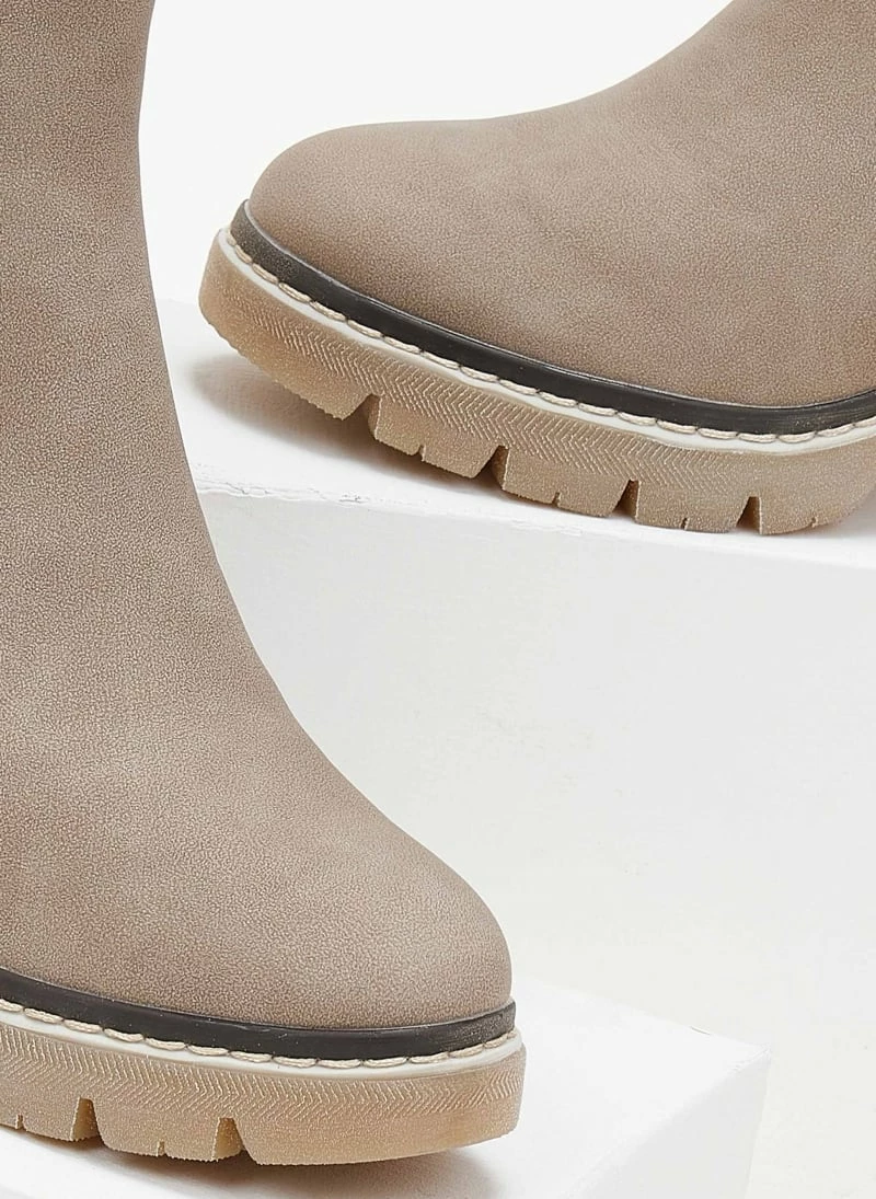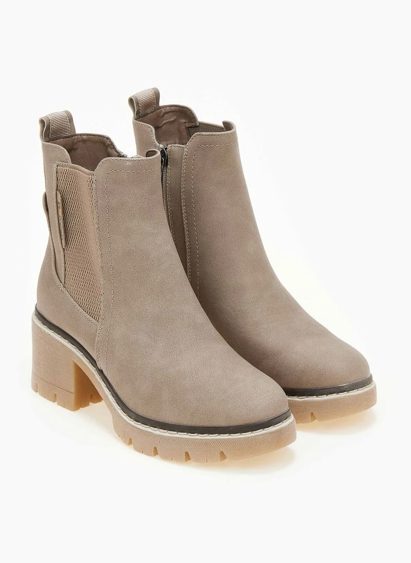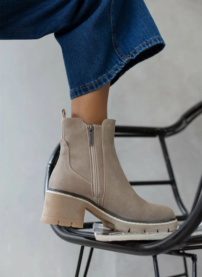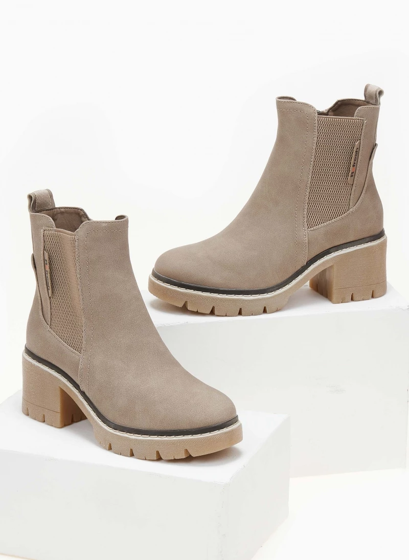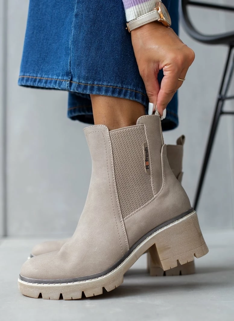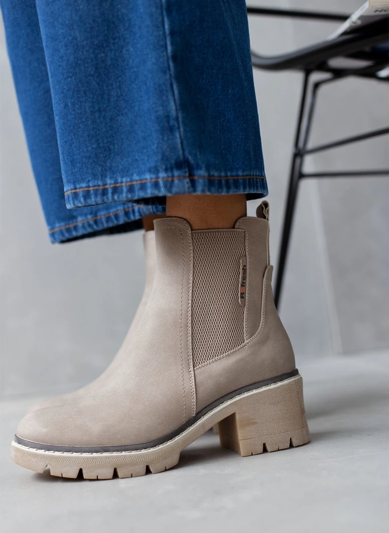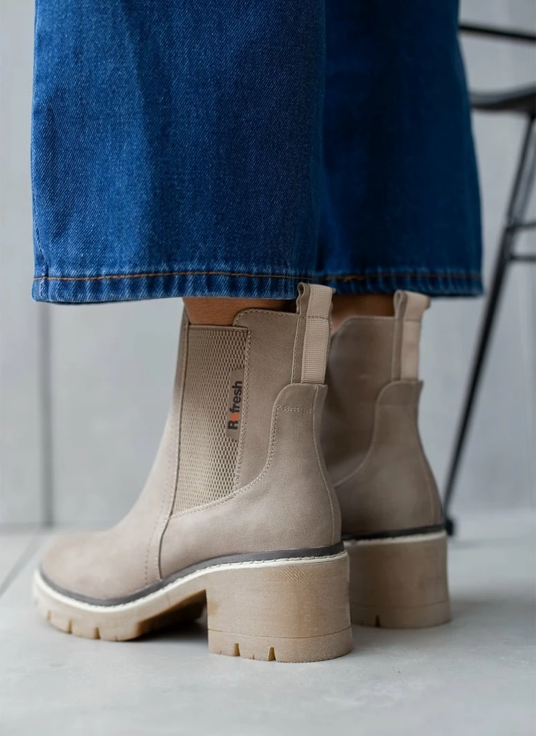 Μποτάκια Refresh σε ματ χρώματα με λάστιχο στο πλάι. Έχουν εξωτερική ραφή περιμετρικά της σόλας. Ασύμμετρο τελείωμα. Τρακτερωτή σόλα. Διακριτικό λογότυπο.