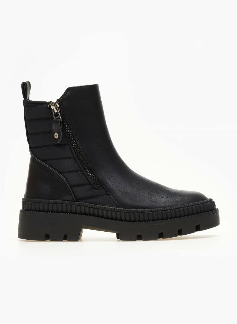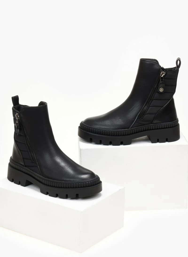 Μποτάκια Refresh με υφασμάτινοκαπιτονέ σχέδιο στο πλάι. Έχουν ανάγλυφο σχέδιο περιμετρικά της σόλας. Διακοσμητικό εξωτερικό φερμουάρ.
