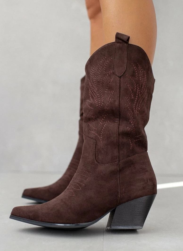 Φτηνός 😉 TFP Μποτάκια Cowboy Suede με σχέδιο – Καφέ 💯