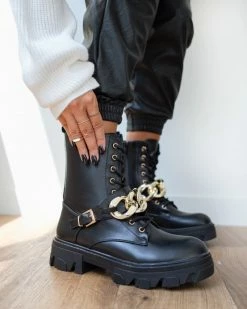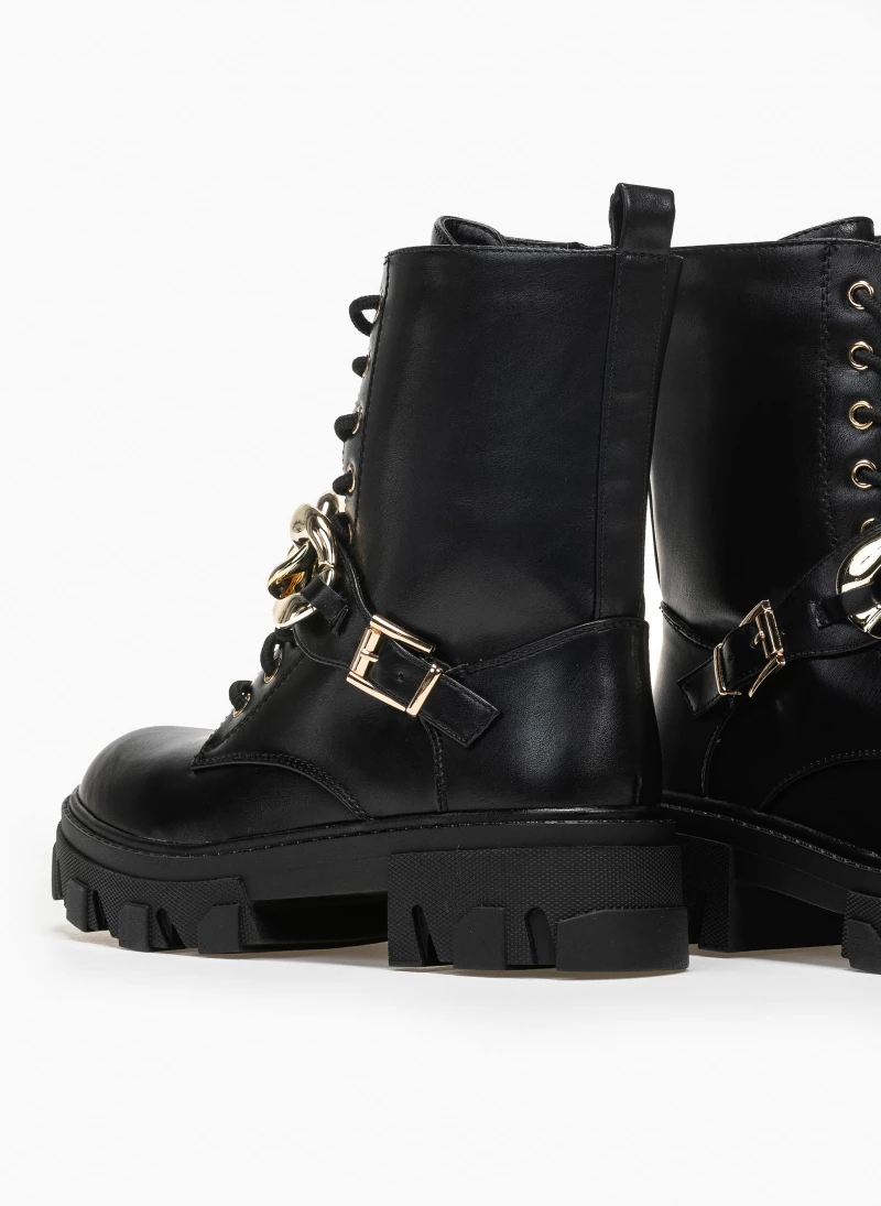 Chunky αρβυλάκια με oversized αλυσίδα στο κουτεπιέ.Έχουν κορδόνια και κλείνουν με φερμουάρ.