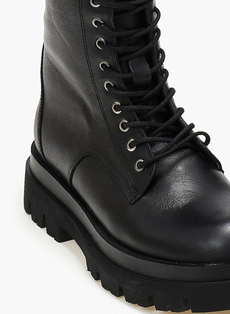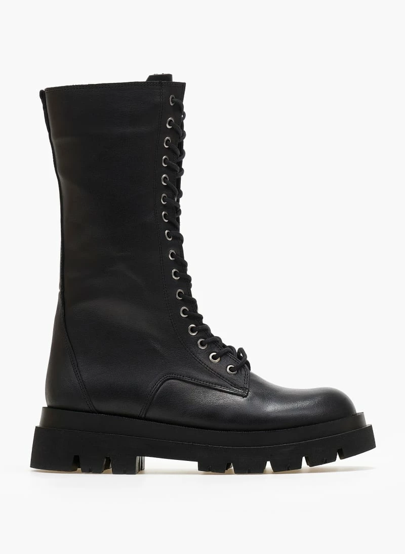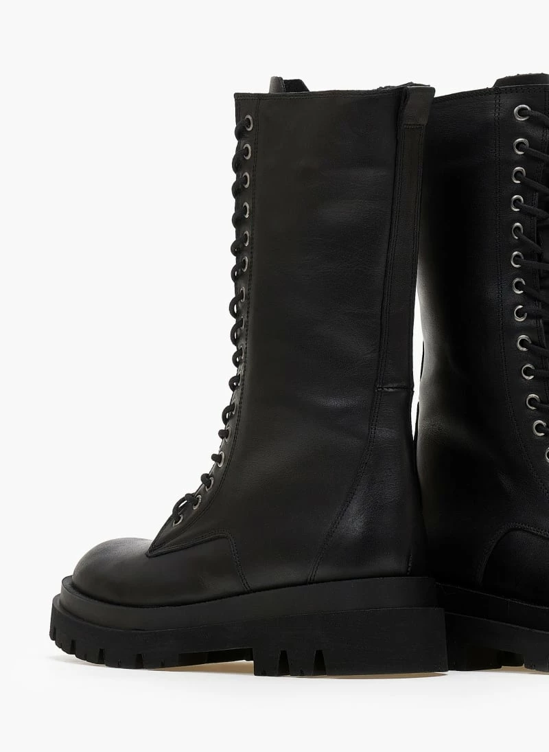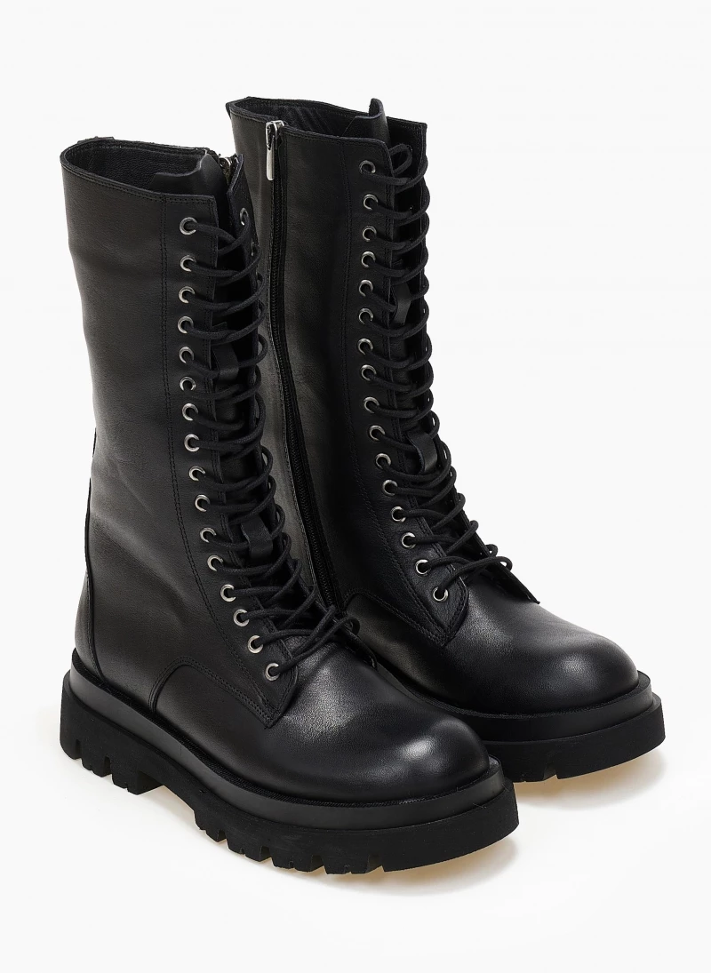 Αρβυλάκια δερμάτινα με κορδόνια. Φτάνουν στη μέση της γάμπας. Τρακτερωτή σόλα.