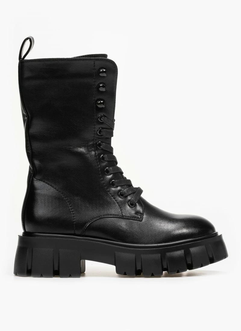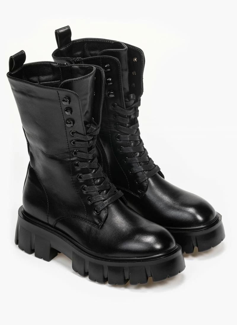 Αρβυλάκια με ψηλή σόλα με σχέδιο.Προσαρμόζονται με κορδόνια και κλείνουν με φερμουάρ.Στρογγυλή γραμμή.