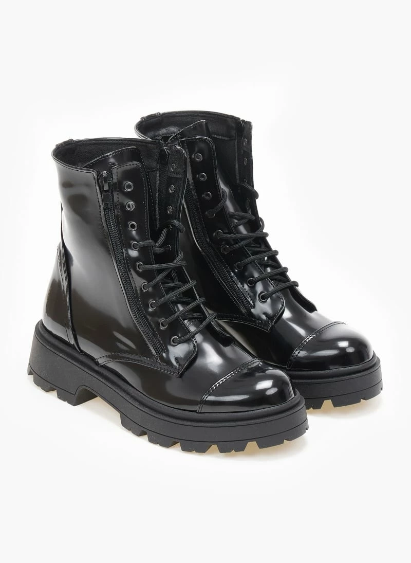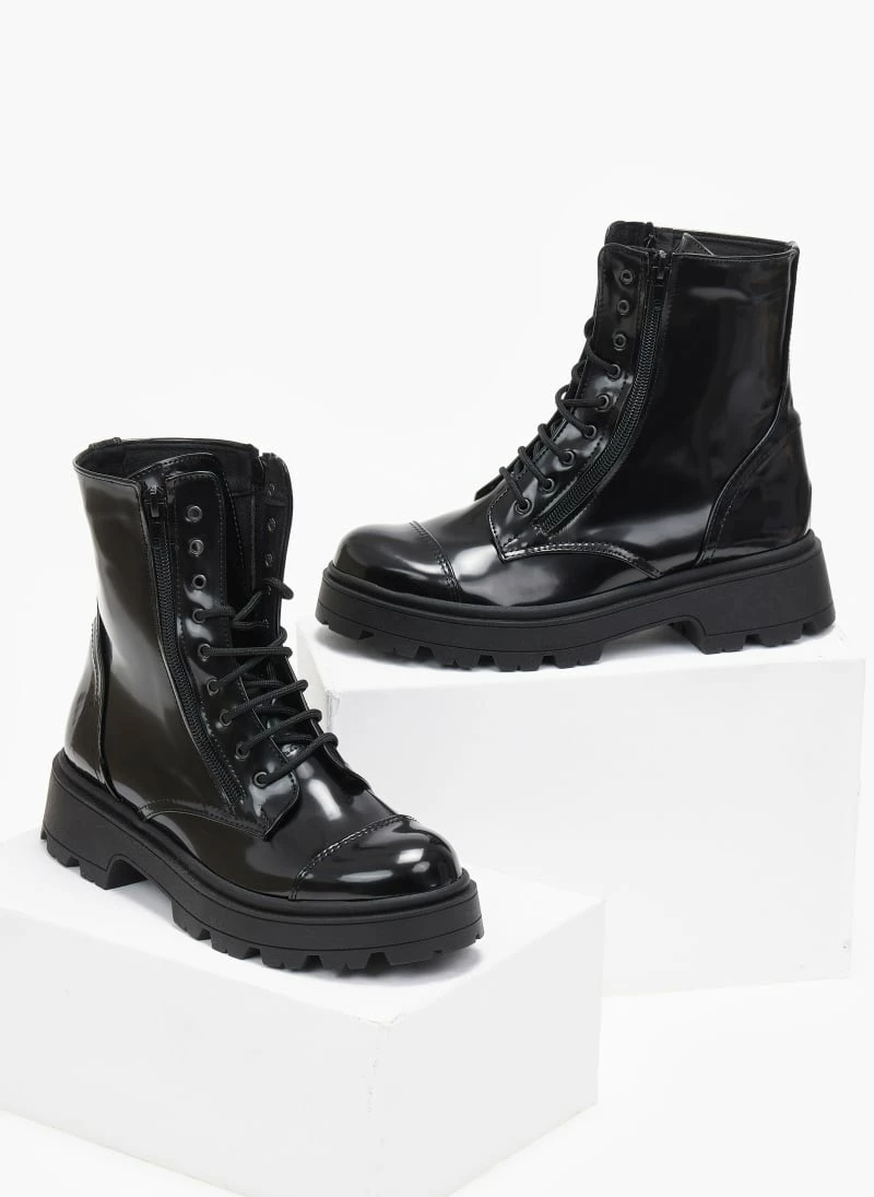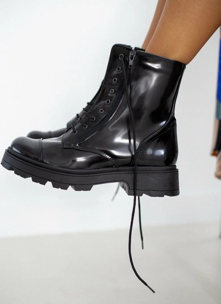 Αρβυλάκια με διπλό φερμουάρ. Έχουν ραφή στο μπροστινό μέρος. Chunky σόλα. Ελληνικής κατασκευής