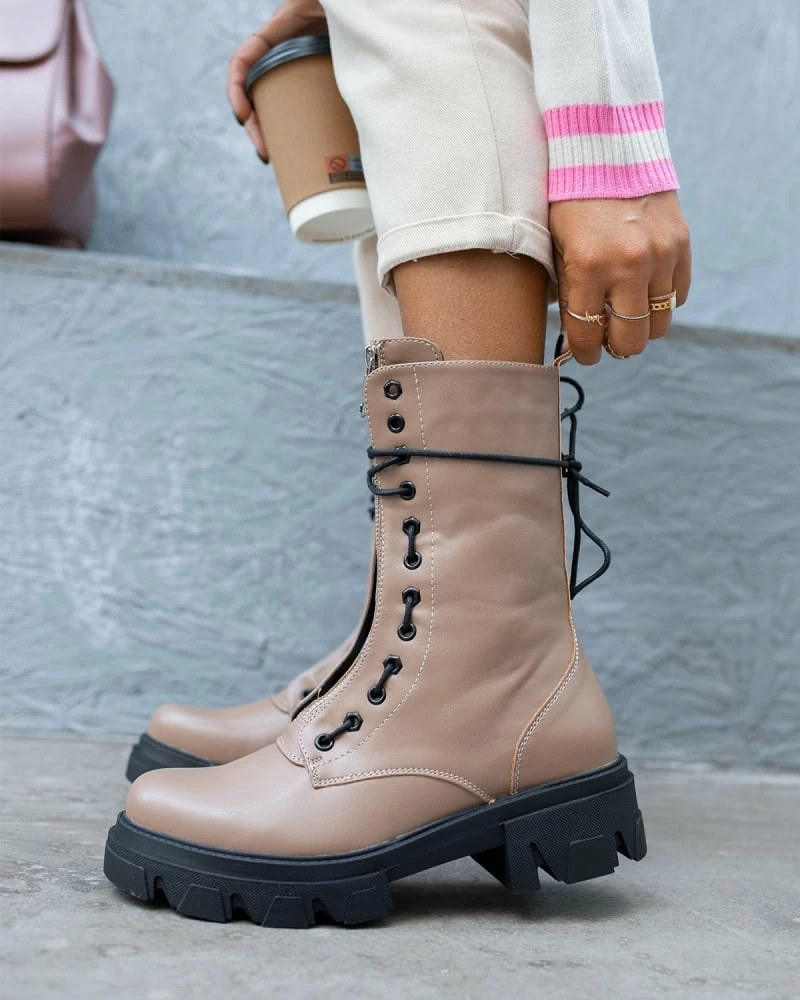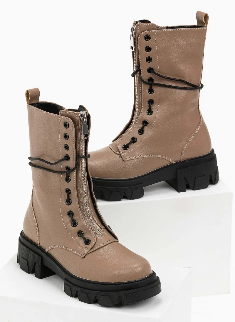 Αρβυλάκια με chunky σόλα και φερμουάρ στη μπροστινή πλευρά.Έχουν περαστά κορδόνια στο πλάι.