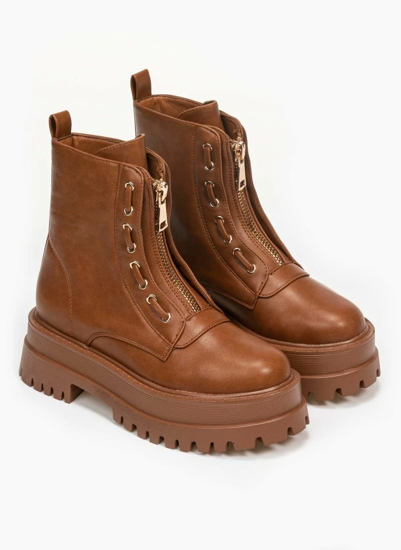 Συμφωνίες 👏 The Fashion Project Αρβυλάκια με φερμουάρ – Ταμπά ⭐