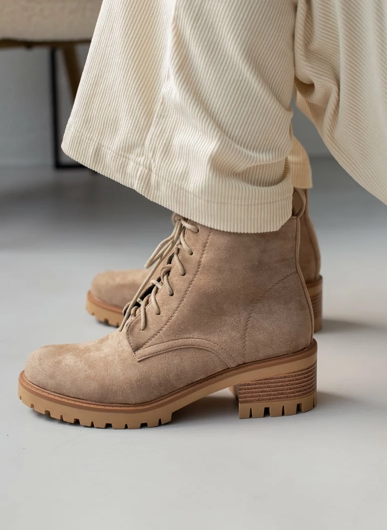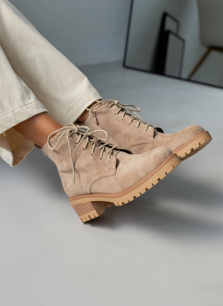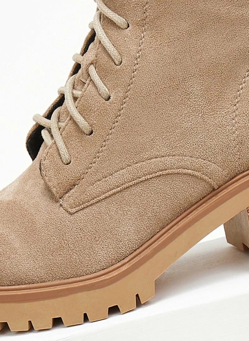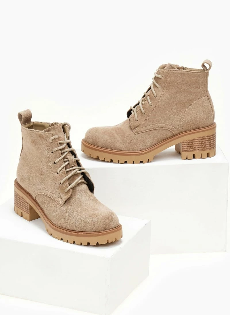 Αρβυλάκια suede με τετράγωνο τακούνι. Στρογγυλή γραμμή. Τρακτερωτή σόλα.