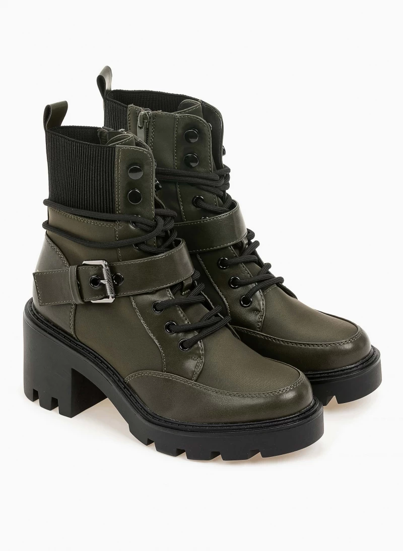 Best Pirce 🤩 The Fashion Project Αρβυλάκια με λάστιχο και ζωνάκι – Χακί 😉