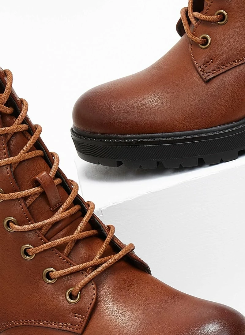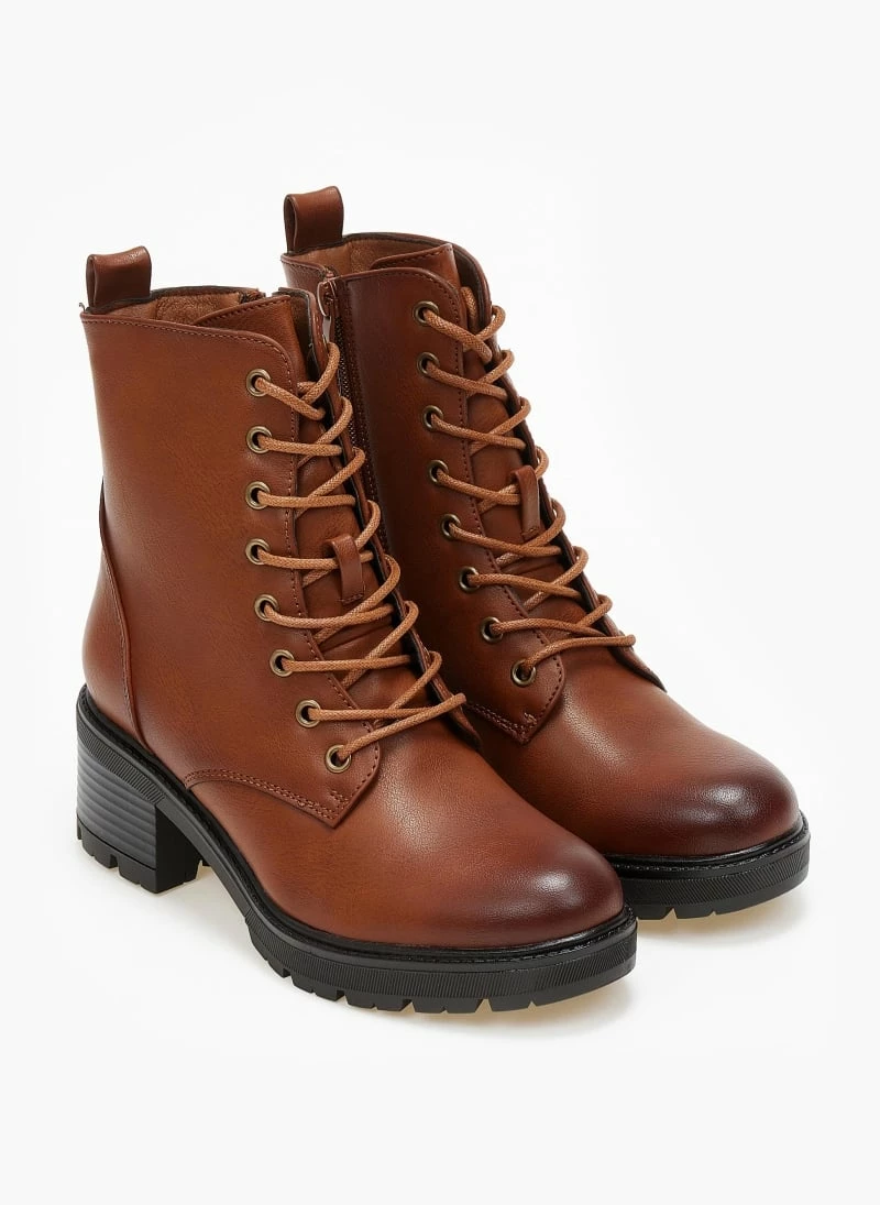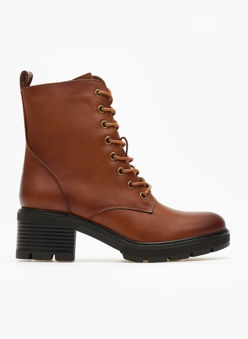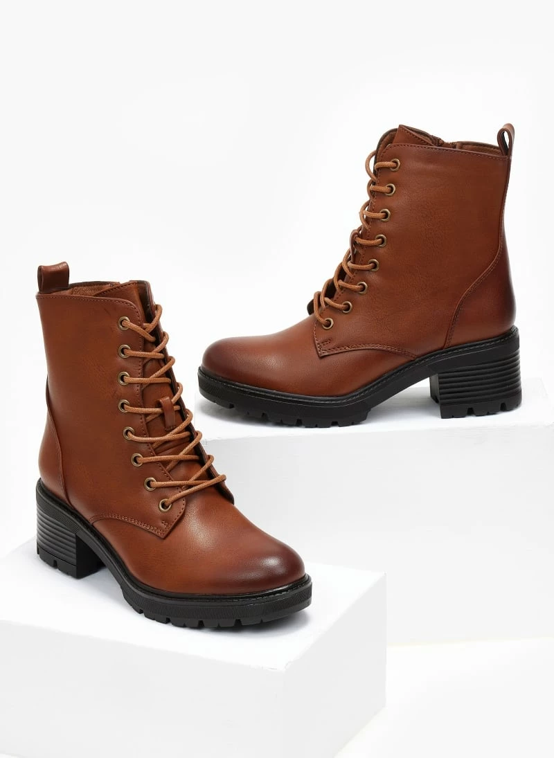 Αρβυλάκια με τετράγωνο τακούνι. Έχουν τρακτερωτή σόλα. Στρογγυλή γραμμή.