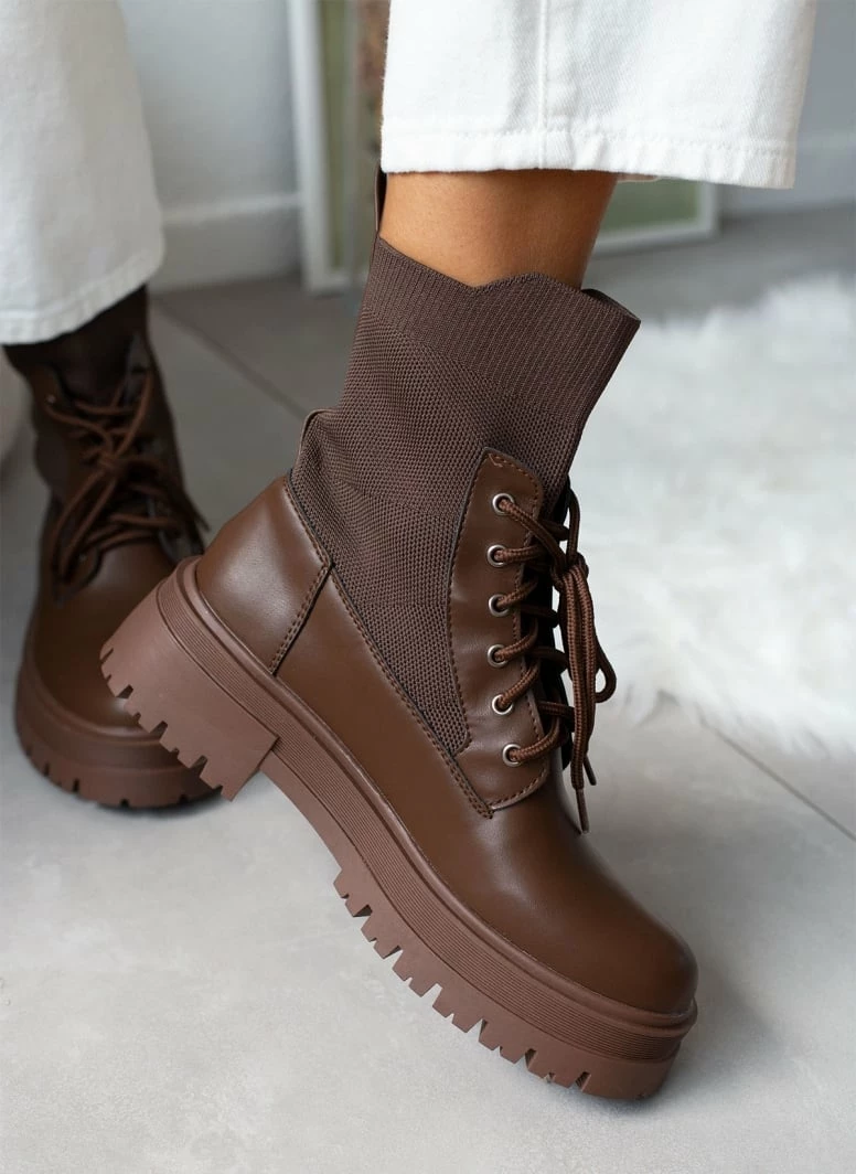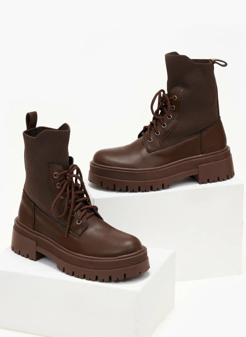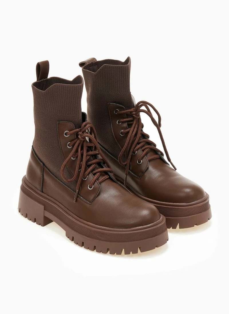 Αρβυλάκια με σχέδιο κάλτσα στη γάμπα.Έχουν ψηλή τρακτερωτή σόλα με σχέδιο. Λεπτομέρεια θηλάκι στο πίσω μέρος.