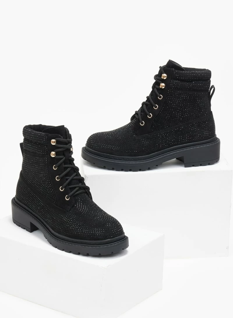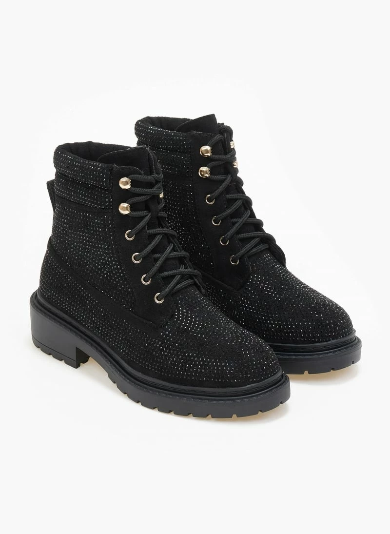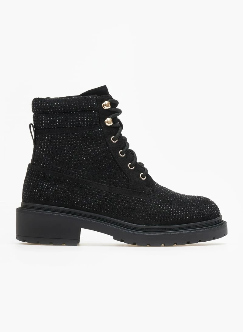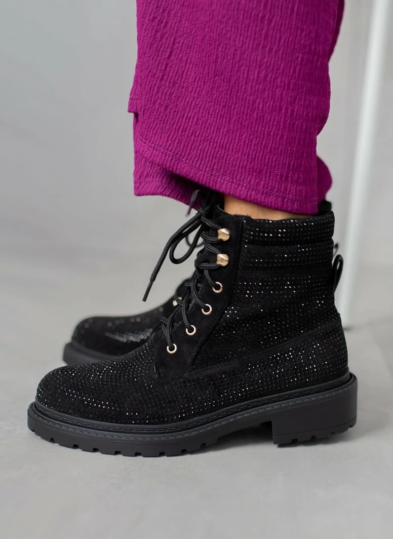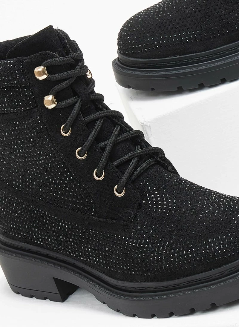 Ολοκαίνουργιο ⌛ The Fashion Project Αρβυλάκια με Strass και εξωτερικές ραφές – Μαύρο 🧨