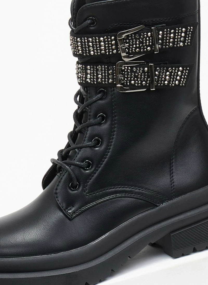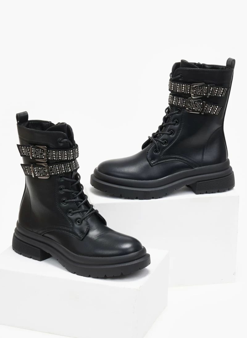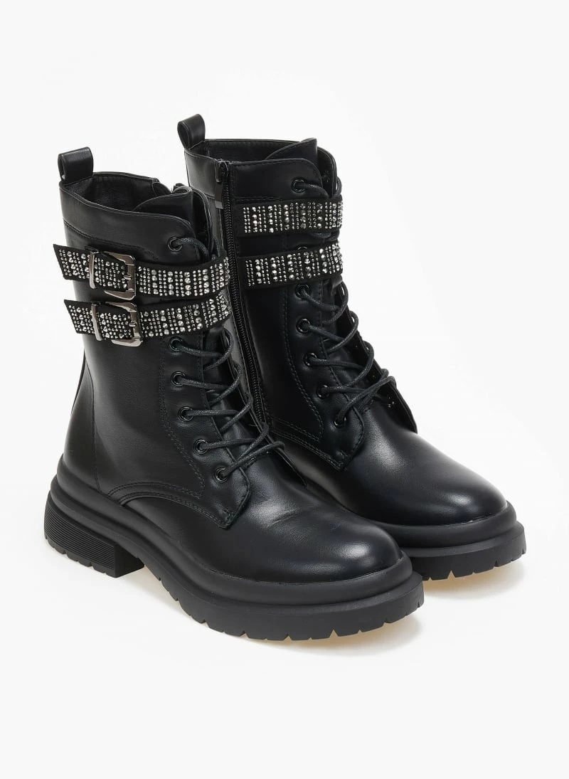Αρβυλάκια με διπλό strass λουράκια στο ύψος του αστραγάλου. Chunky τρακτερωτή σόλα.