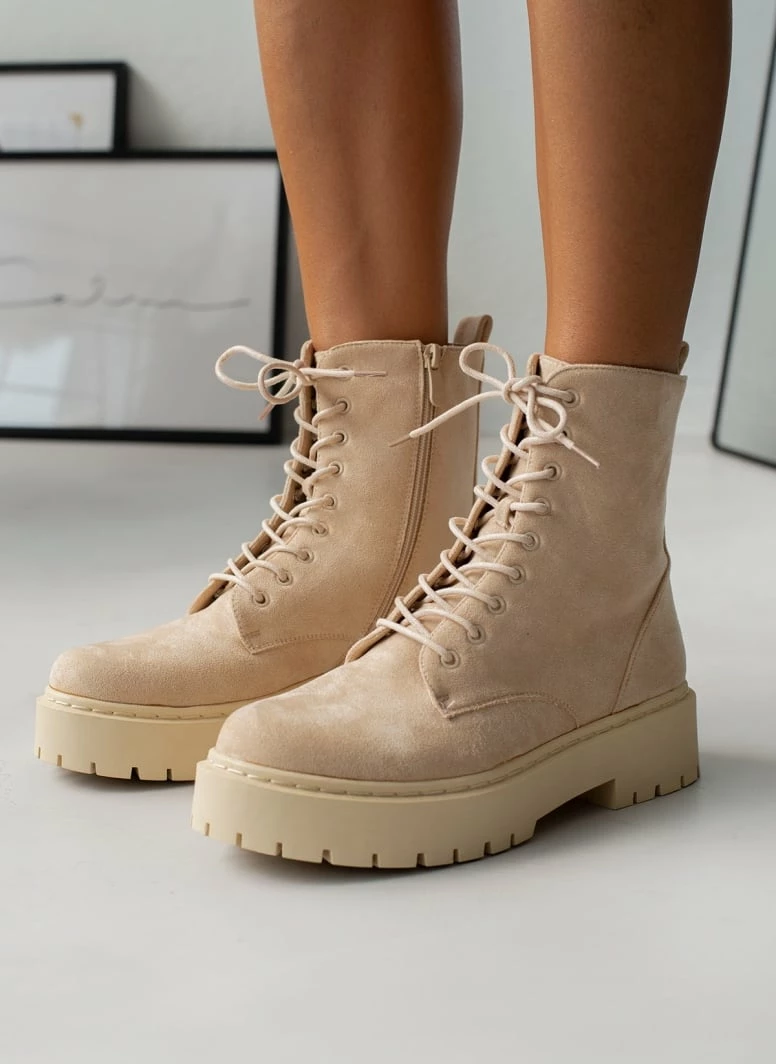 Αρβυλάκια suede με κορδόνια. Έχουν τρακτερωτή σόλα με εξωτερικη ραφή. Θηλάκι στο τελείωμα.