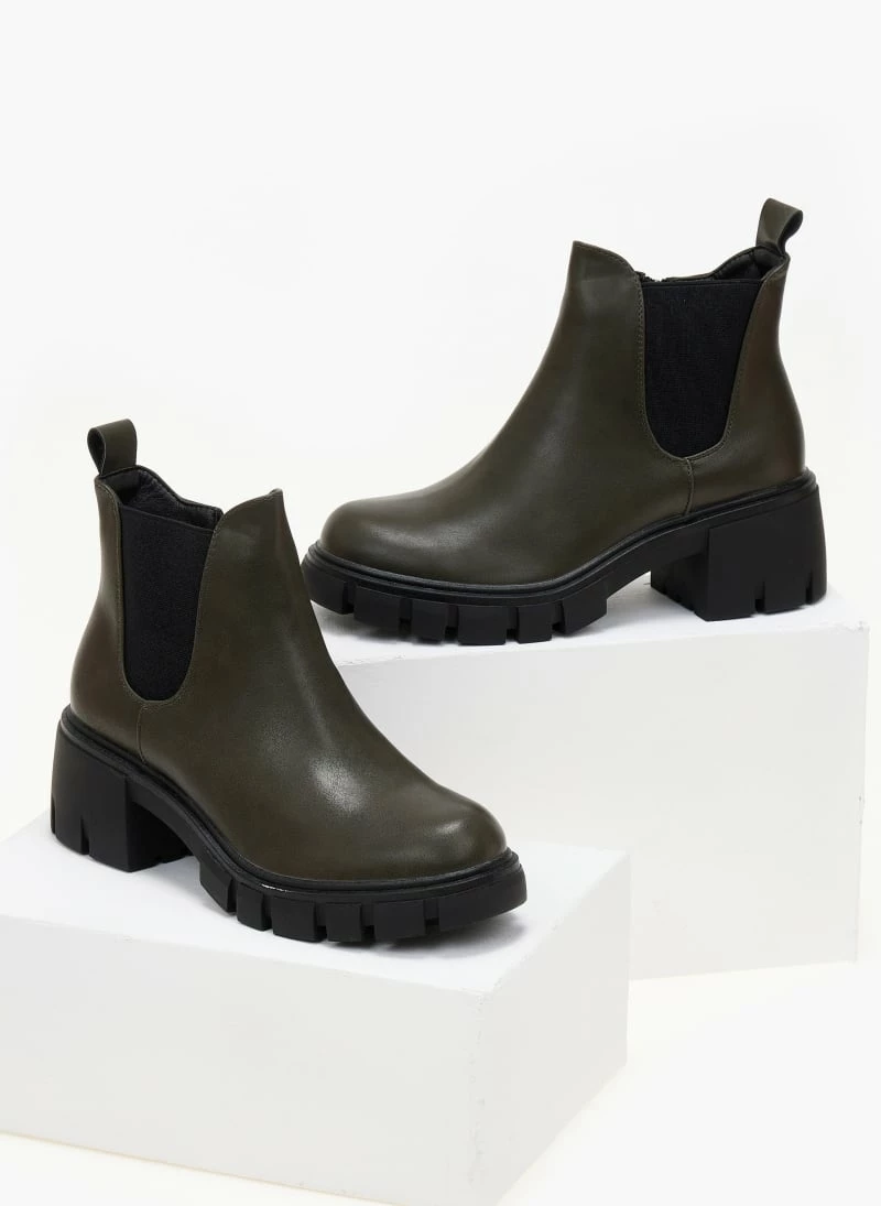 Νέος 🌟 The Fashion Project Μποτάκια αστραγάλου με Chunky σόλα – Λαδί 😍