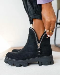 Suede ankle μποτάκια με ανοίγματα και έντονα φερμουάρ.Στρογγυλή γραμμή.