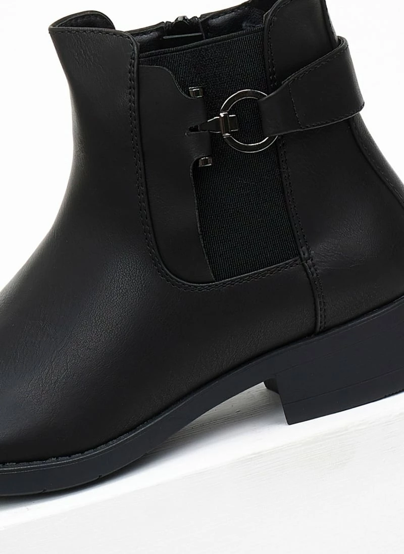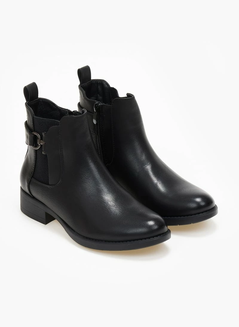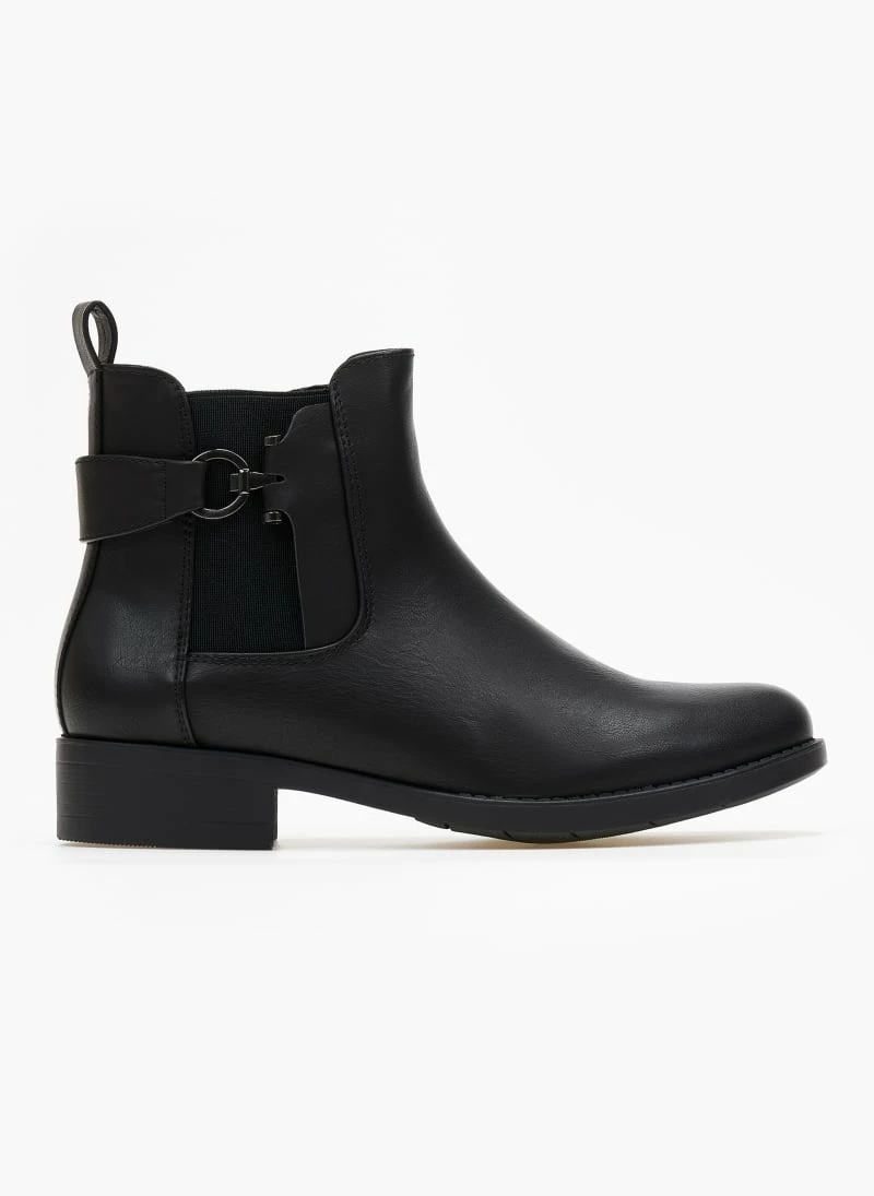 Casual μποτάκια αστραγάλου. Έχουν λάστιχο και μεταλλικό διακοσμητικό στην εξωτερική τους πλευρά. Στρογγυλή γραμμή.