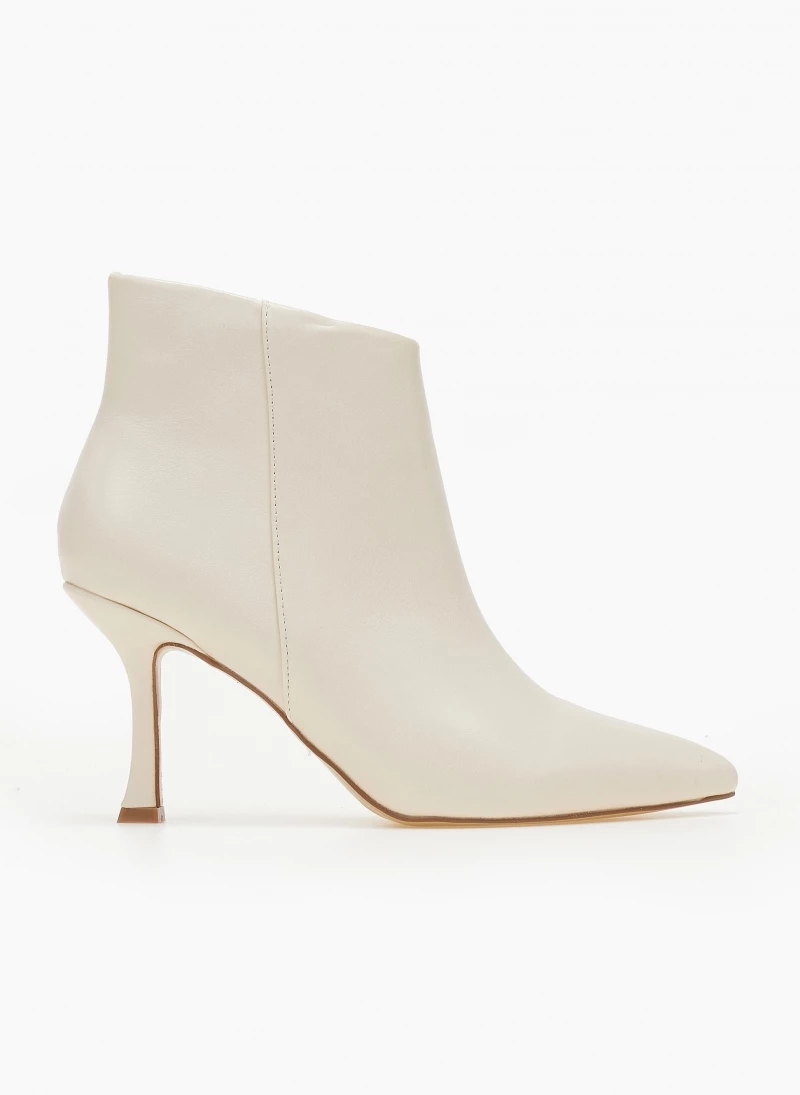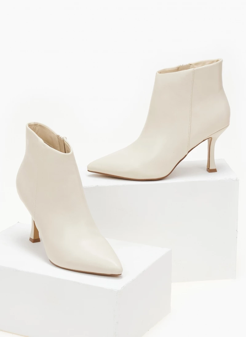 Μποτάκια αστραγάλου με λεπτό ψηλό τακούνι. Έχουν κάθετη ραφή στην εξωτερική τους πλευρά. Μυτερή φόρμα.