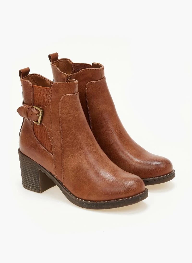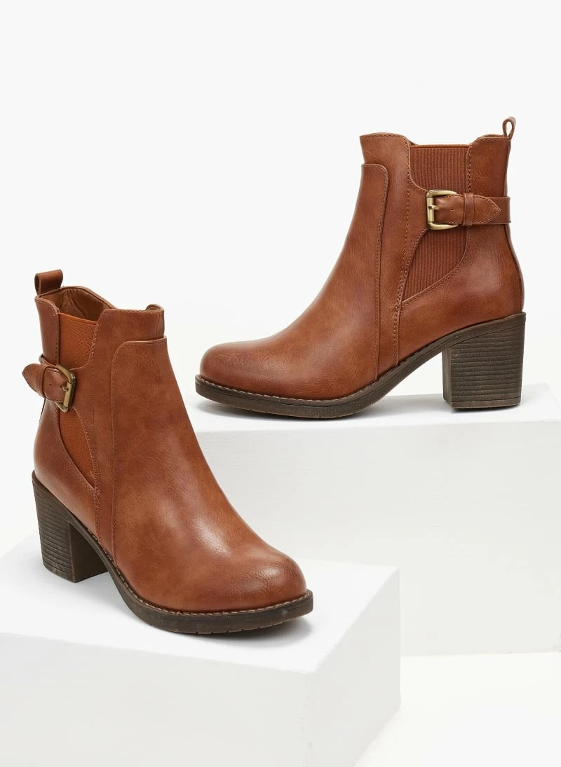 All day μποτάκια με τετράγωνο τακούνι και ζωνάκι. Έχουν λάστιχο στο πλάι και στο εσωτερικό λειτουργικό φερμουάρ.