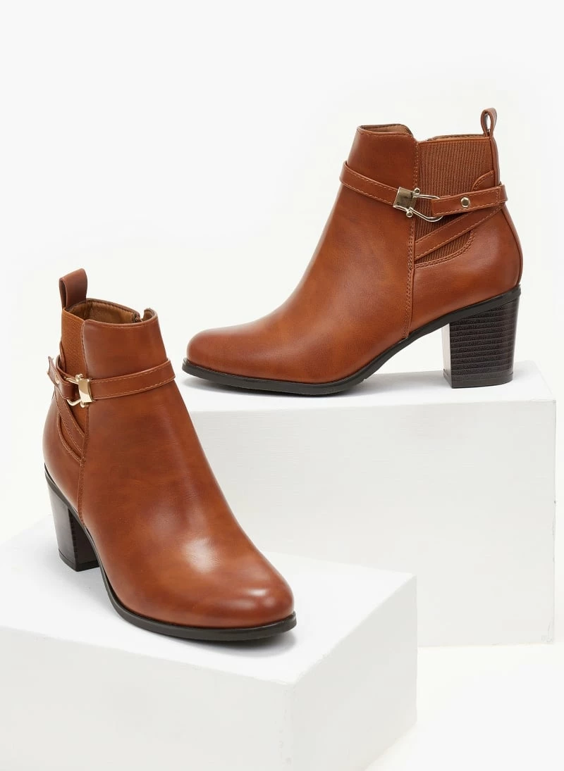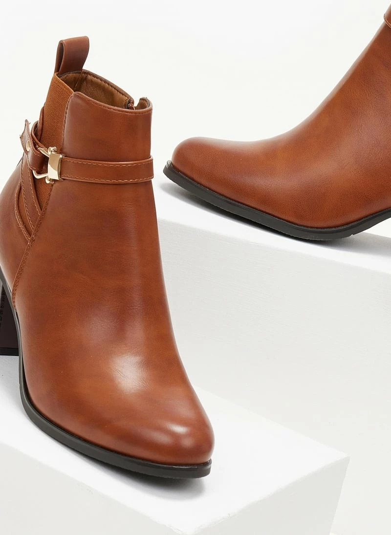 Flash Sale 👏 The Fashion Project Μποτάκια αστραγάλου με μεταλλική λεπτομέρεια – Ταμπά ⭐