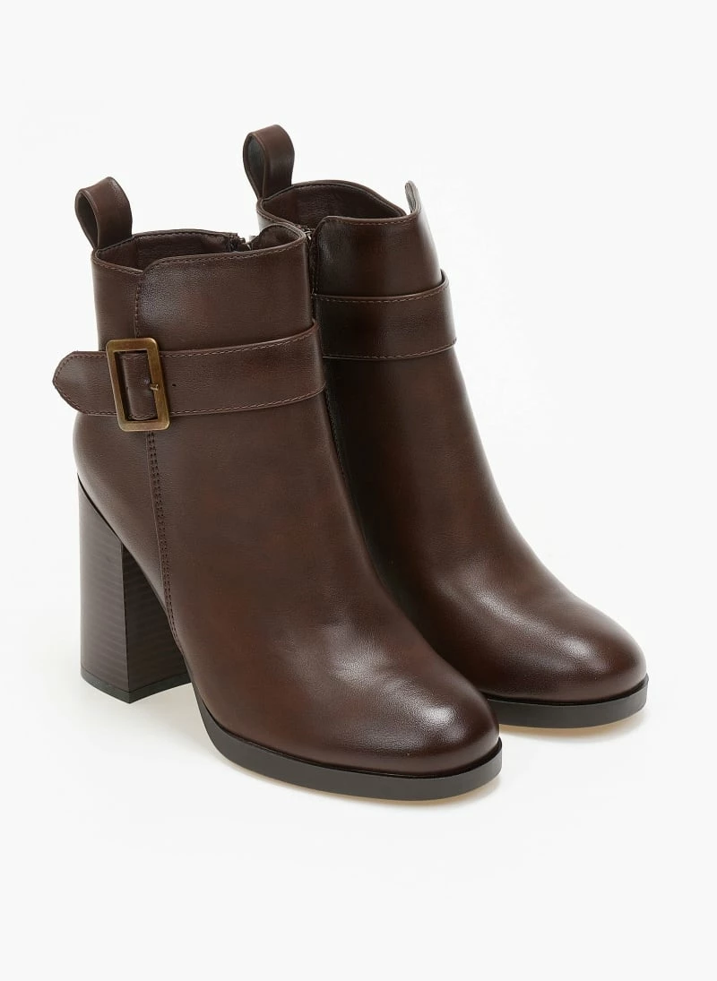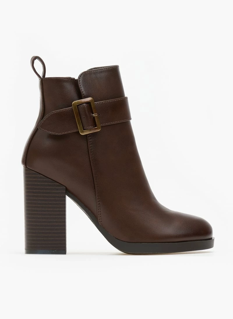 Εξοδος 🛒 The Fashion Project Μποτάκια αστραγάλου με ζωνάκι – Καφέ 🔥