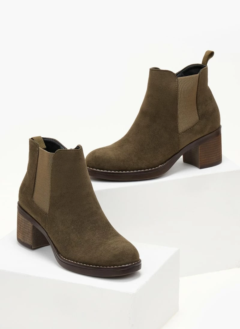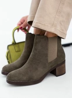Εκπτωση 👍 The Fashion Project Μποτάκια αστραγάλου Suede με λάστιχο – Χακί 👍