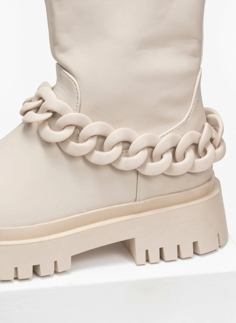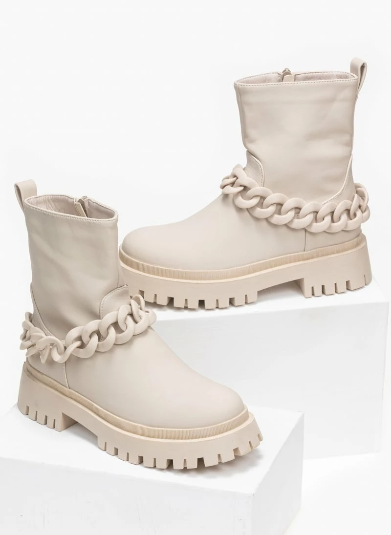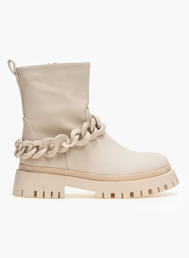 Κουπόνι 🎁 The Fashion Project Μποτάκια Biker ματ με αλυσίδα – Μπεζ ✔️