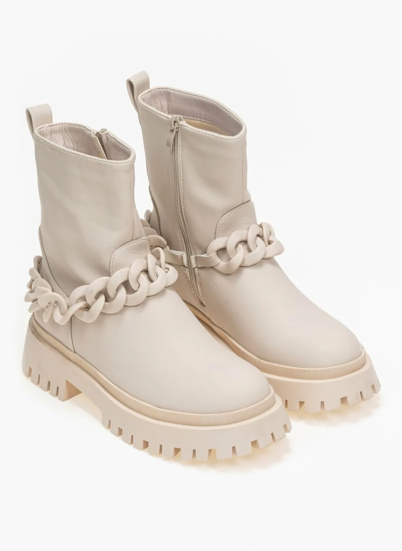 Ματ μποτάκια με τρακτερωτή σόλα.Έχουν σχέδιο ματ αλυσίδα στο ίδιο χρώμα στο ύψος του αστραγάλου.