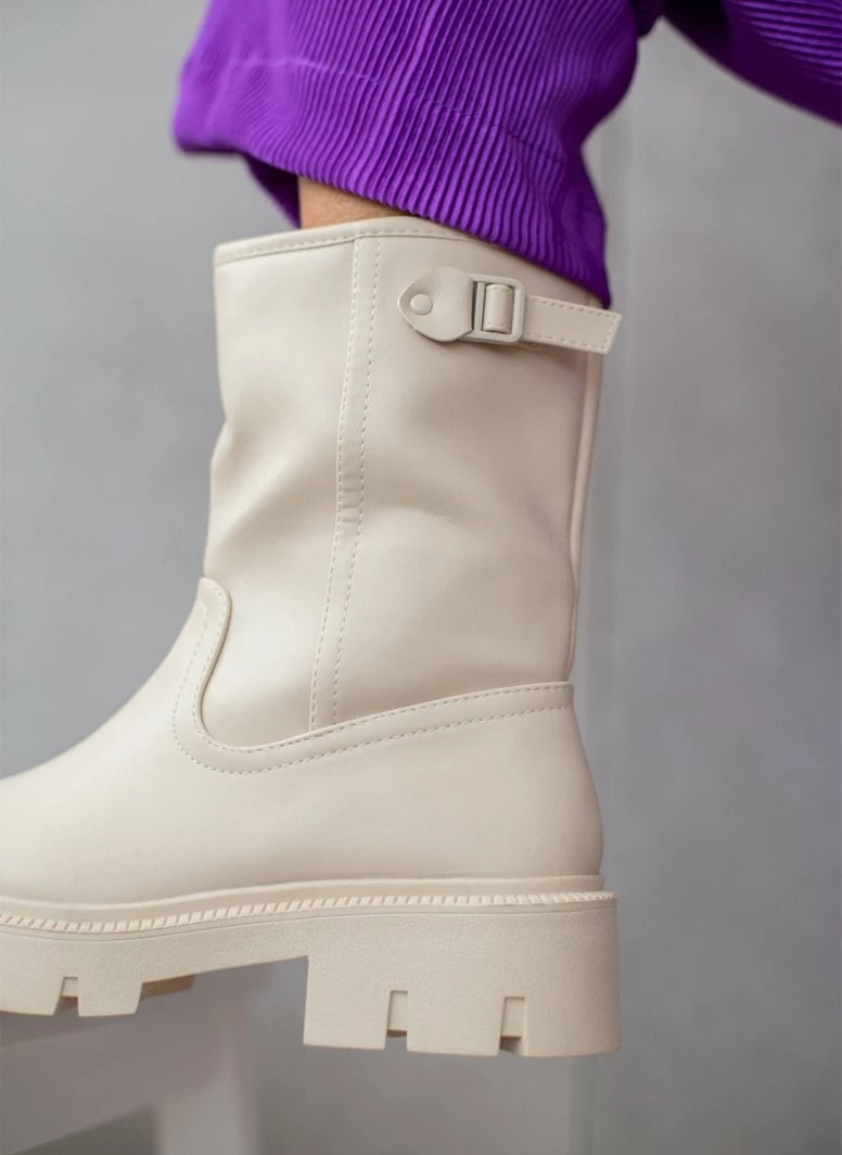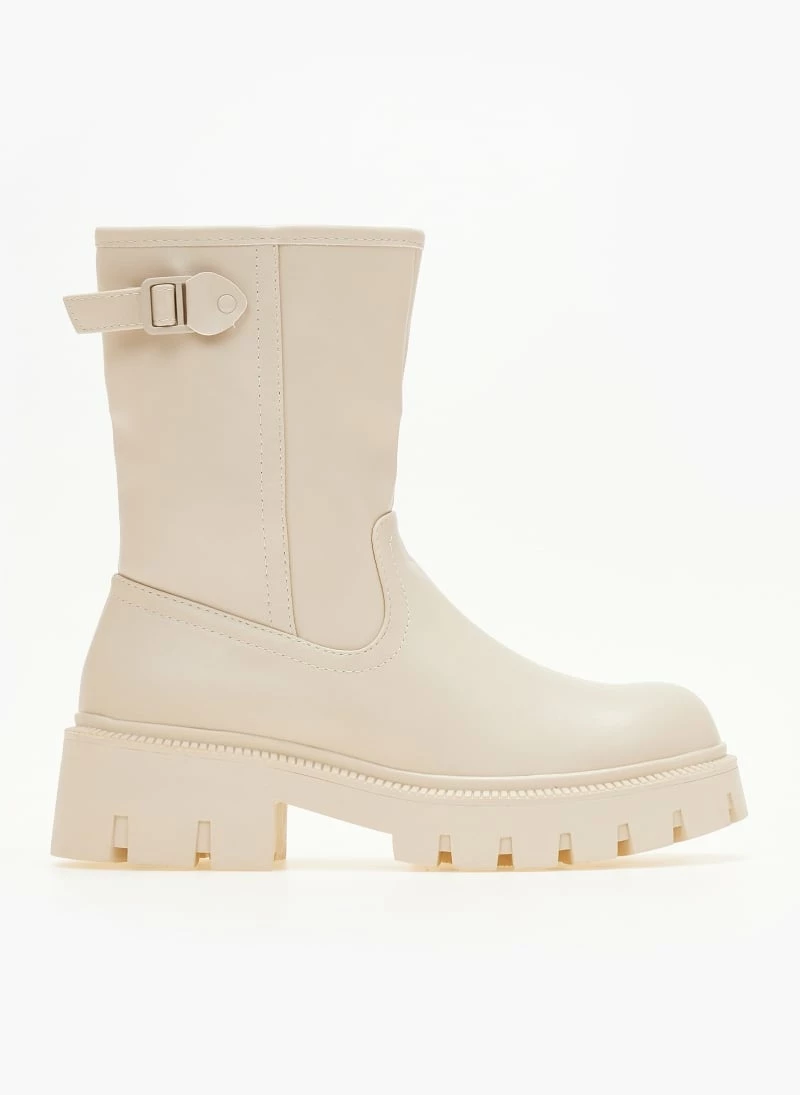 Τοπ 10 ❤️ The Fashion Project Μποτάκια Biker με ψηλή τρακτερωτή σόλα – Μπεζ 😍