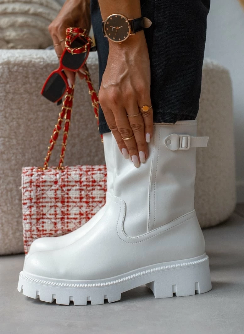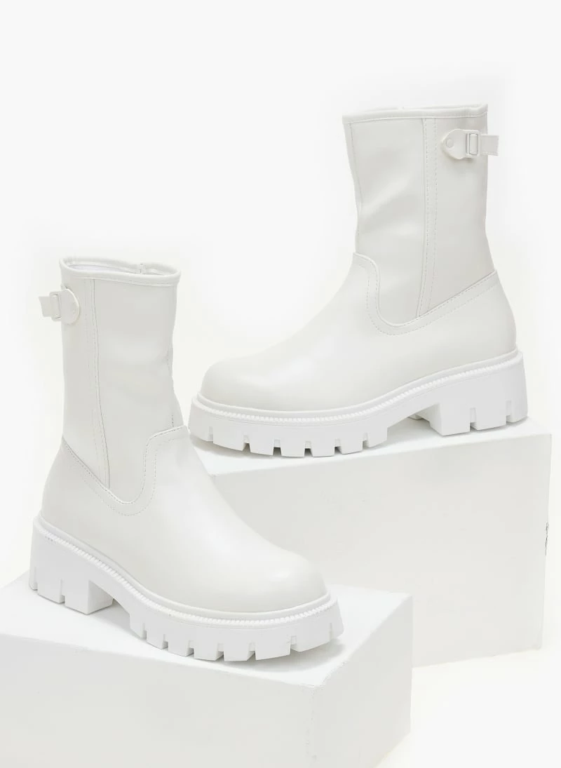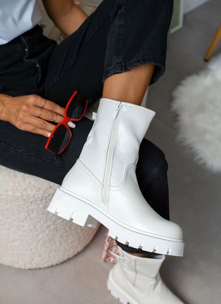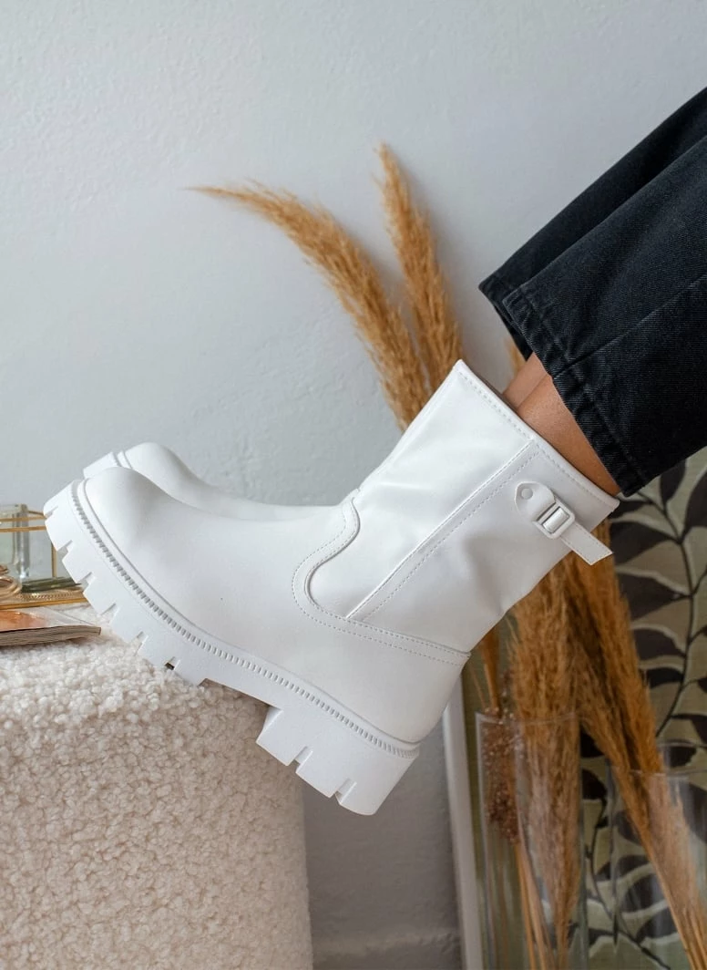 Αγορά 🎉 The Fashion Project Μποτάκια Biker με τρακτερωτή σόλα – Λευκό 💯