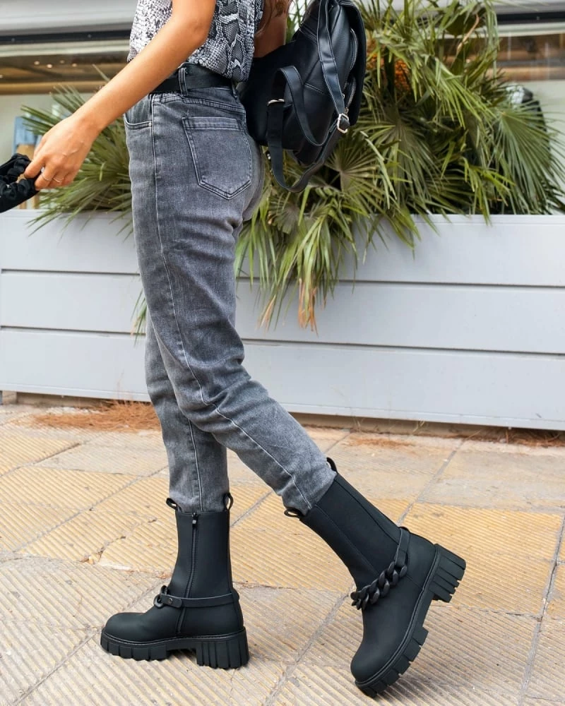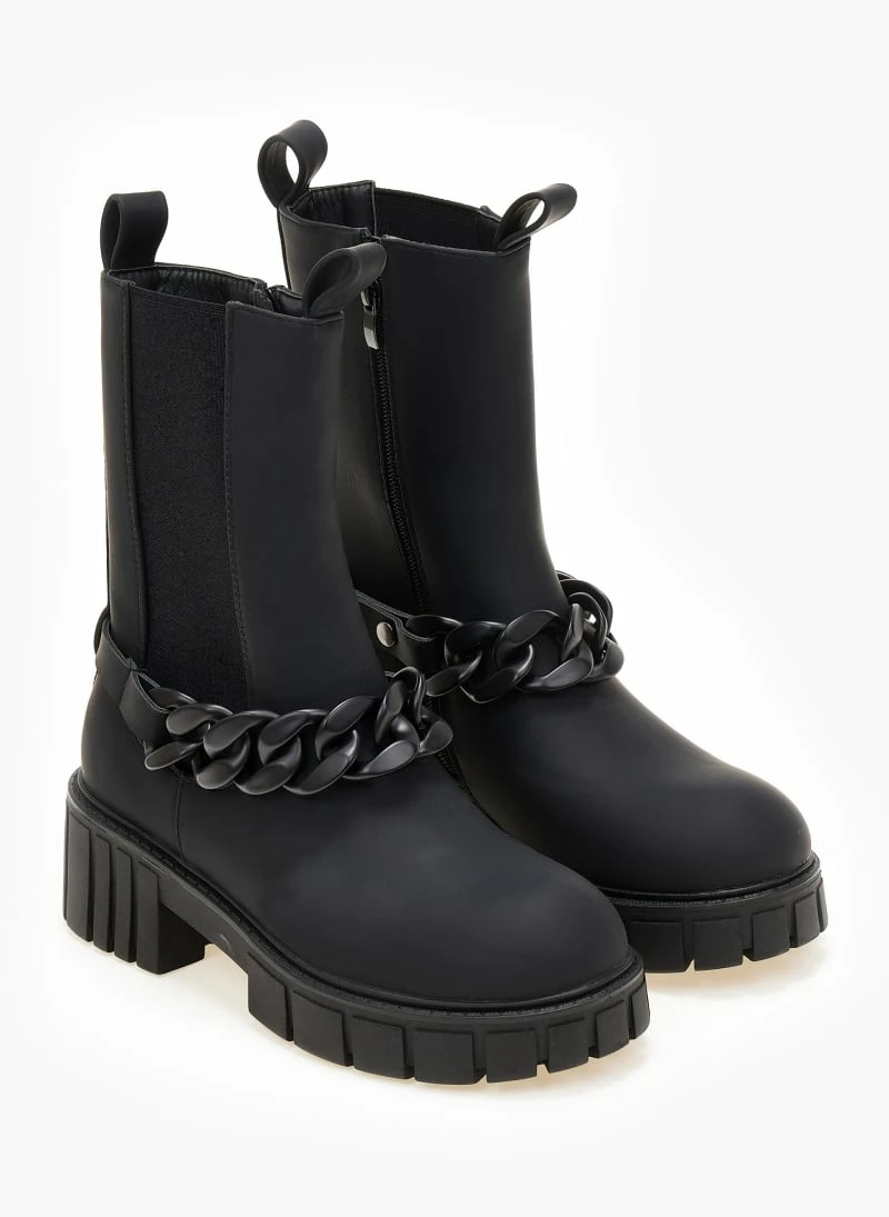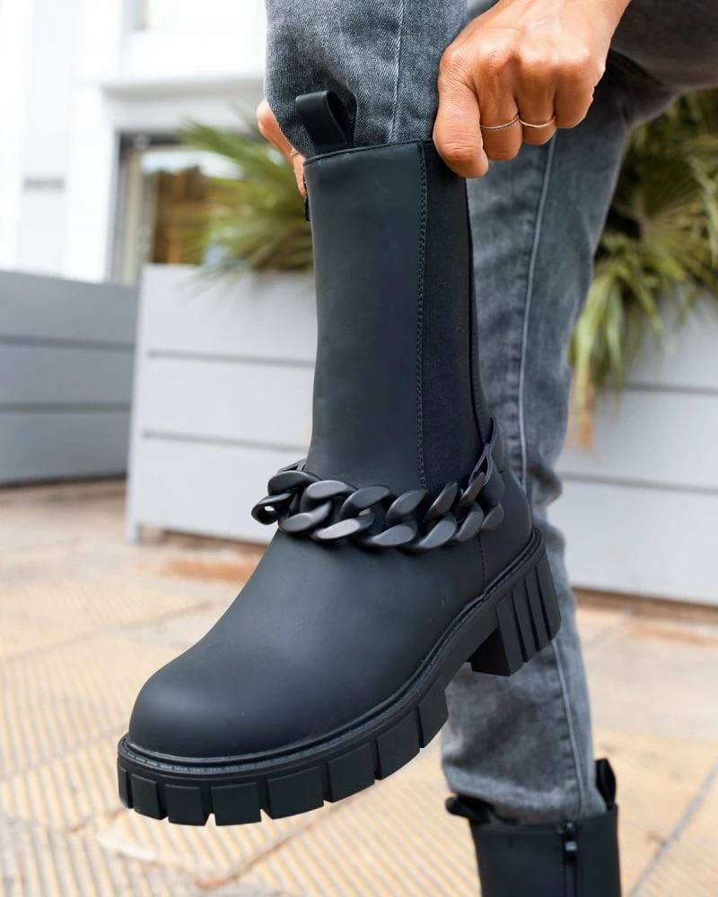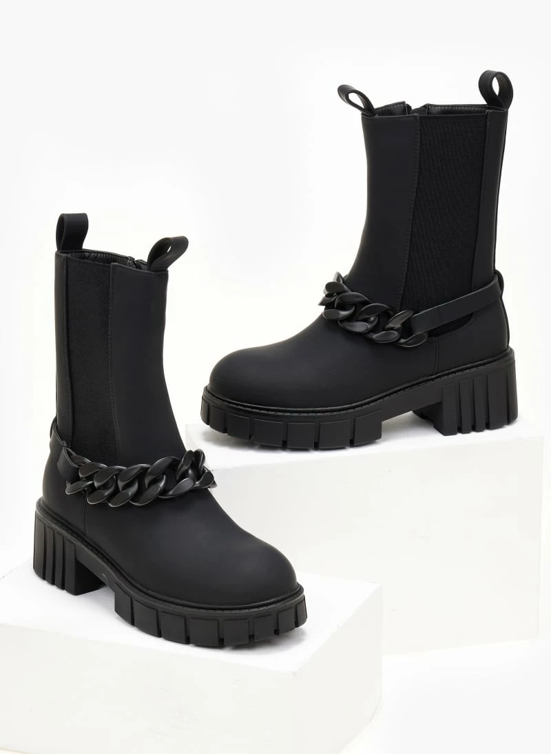 Best Pirce 👍 The Fashion Project Μποτάκια Chelsea ματ με αλυσίδα – Μαύρο 🎁
