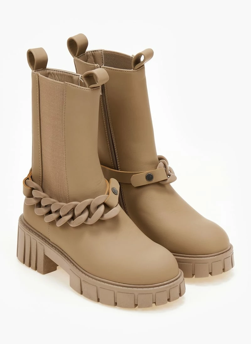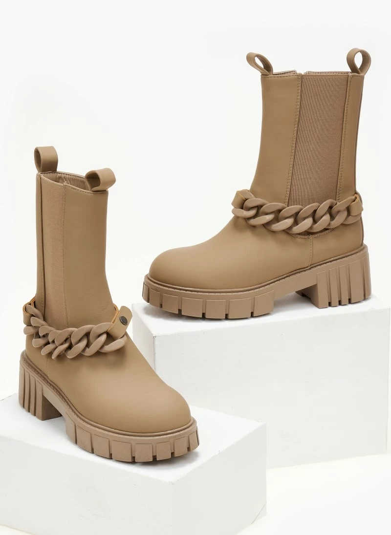 ΧΟΝΔΡΙΚΟ ΕΜΠΟΡΙΟ 🔥 The Fashion Project Μποτάκια Chelsea ματ με αλυσίδα – Πούρο ✔️