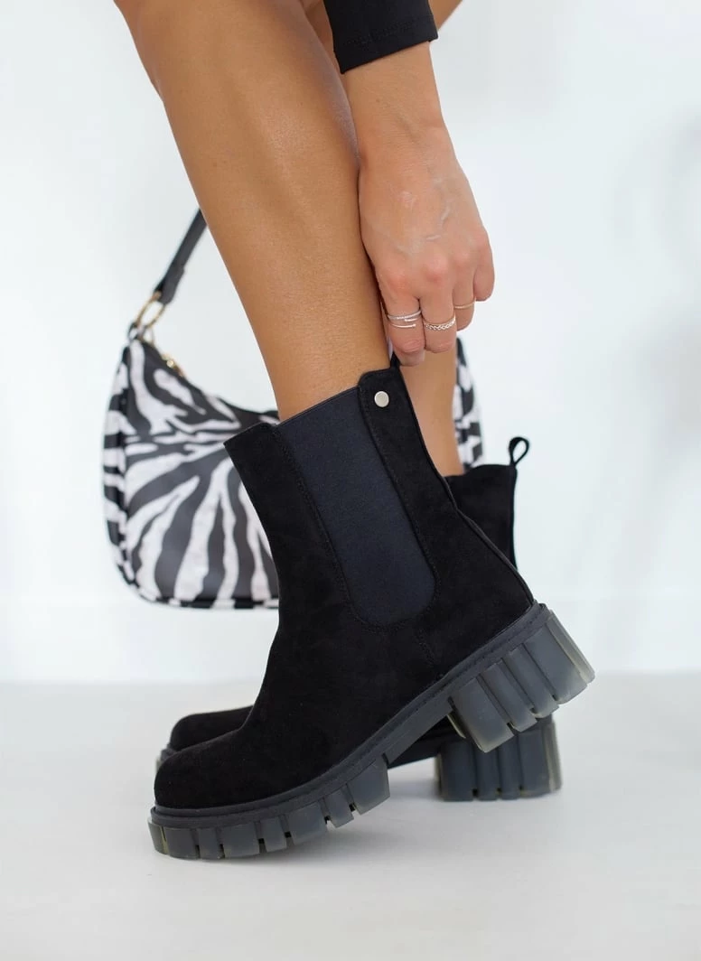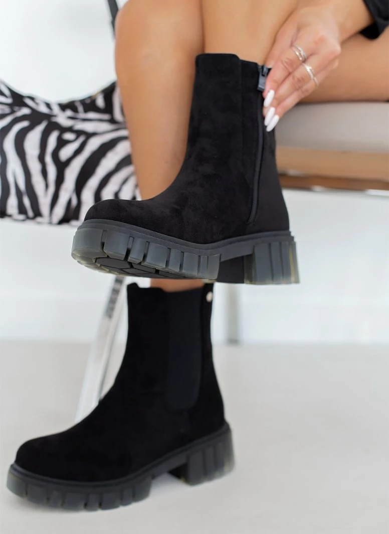 Μποτάκια chelsea με chunky σόλα. Έχουν λάστιχο στην εξωττερική τους πλευρά. Διακριτικό μεταλλικό στοιχείο στο επάνω μέρος.