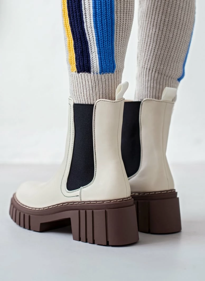 Μποτάκια casual σε στρογγυλή γραμμή. Έχουν ψηλή chunky σόλα. Λάστιχο στο πλάι για καλύτερη εφαρμογή. Θηλάκι στο πίσω μέρος. Εξωτερική ραφή στη σόλα.
