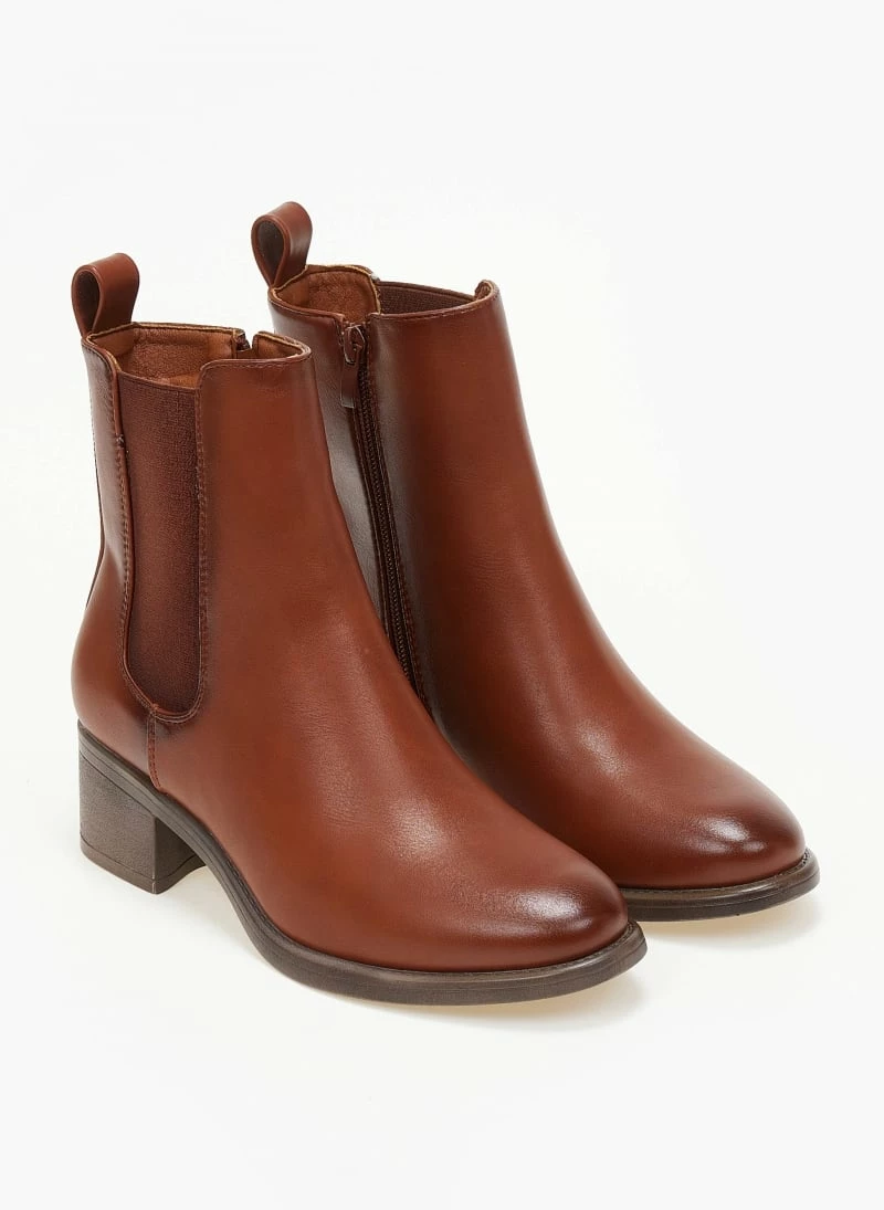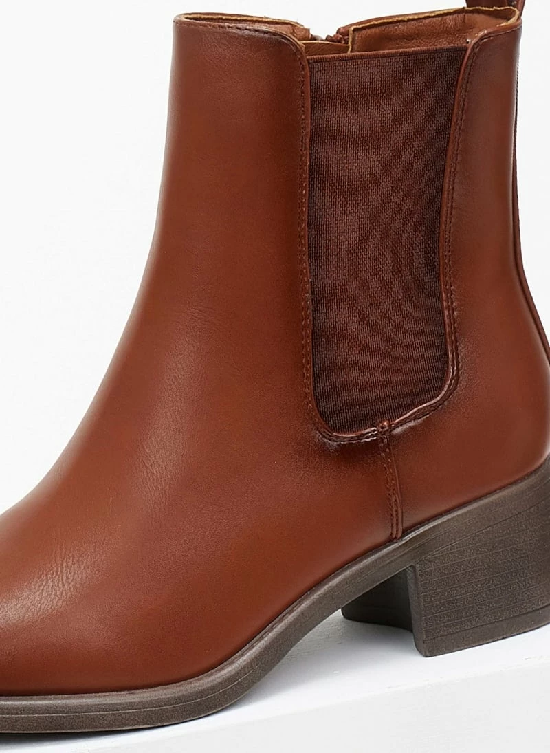 Μποτάκια chelsea με τακούνι σε στρογγυλή γραμμή. Έχουν λάστιχο στο πλάι και θηλάκι στο πίσω μέρος.