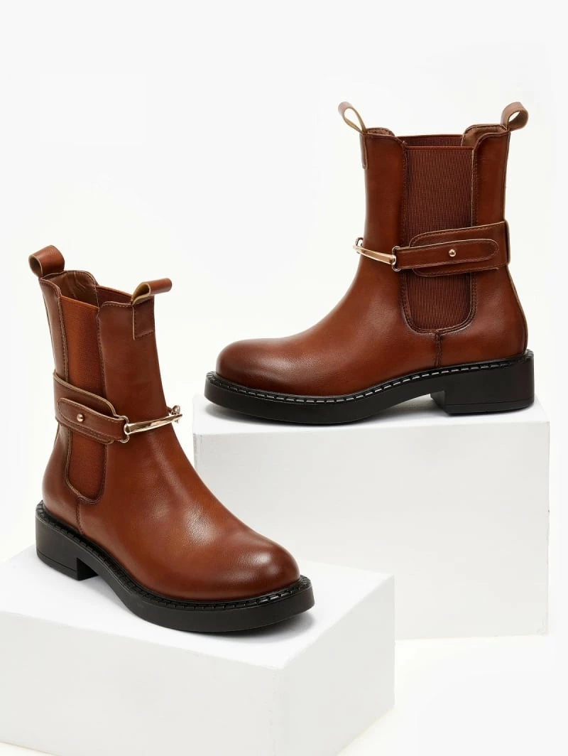Flash Sale ⌛ The Fashion Project Μποτάκια Chelsea με μεταλλικό στοιχείο – Ταμπά 🧨
