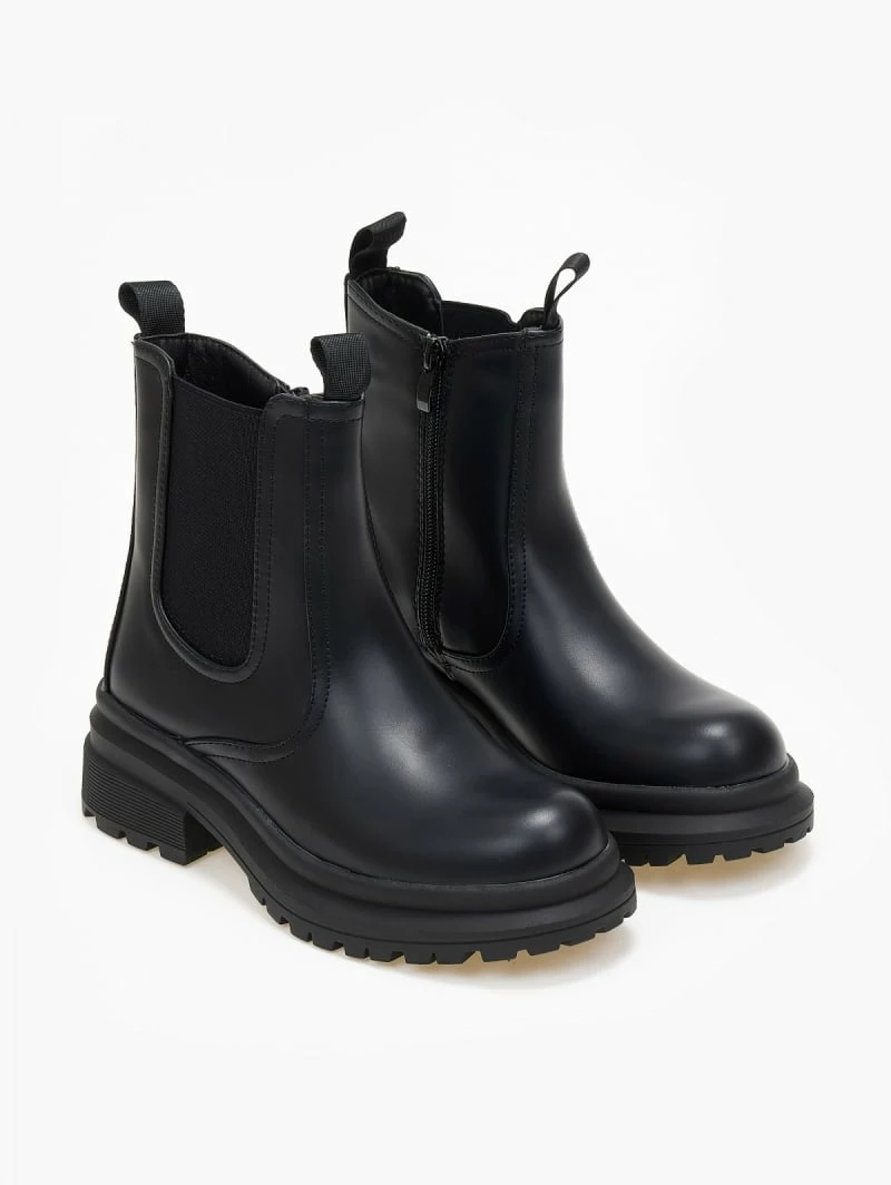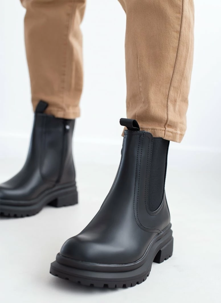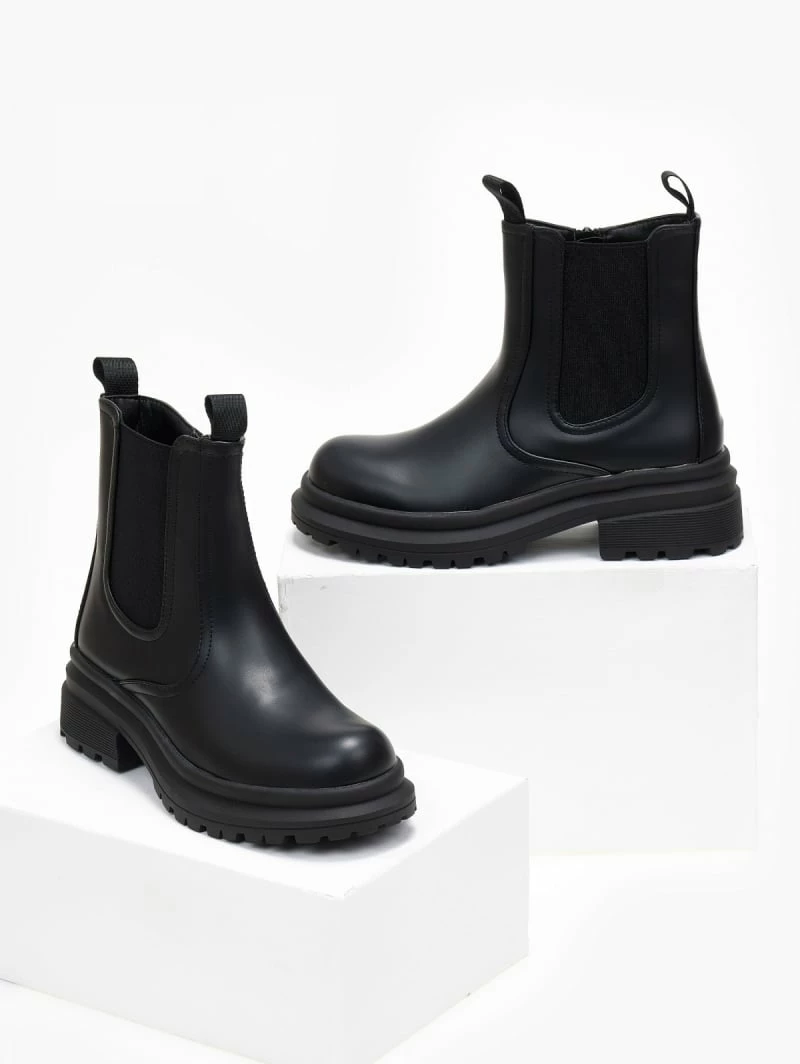 Μποτάκια chelsea με τρακτερωτή σόλα. Έχουν λάστιχο στην εξωτερική τους πλευρά.