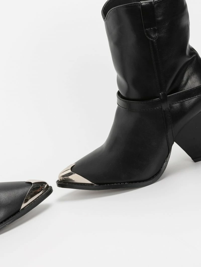 Κουπόνι 🎁 The Fashion Project Μποτάκια Cowboy με μεταλλική λεπτομέρεια – Μαύρο 👏