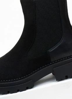 Μποτάκια cowboy suede. Έχουν σχέδιο με ραφές. Οβάλ τελείωμα με θηλάκι. Ξύλινο ψηλό τακούνι. Διαθέτουν ζεστή χνουδωτή επένδυση στο εσωτερικό τους. Λεπτομέρεια δερματίνη στο τελείωμα.