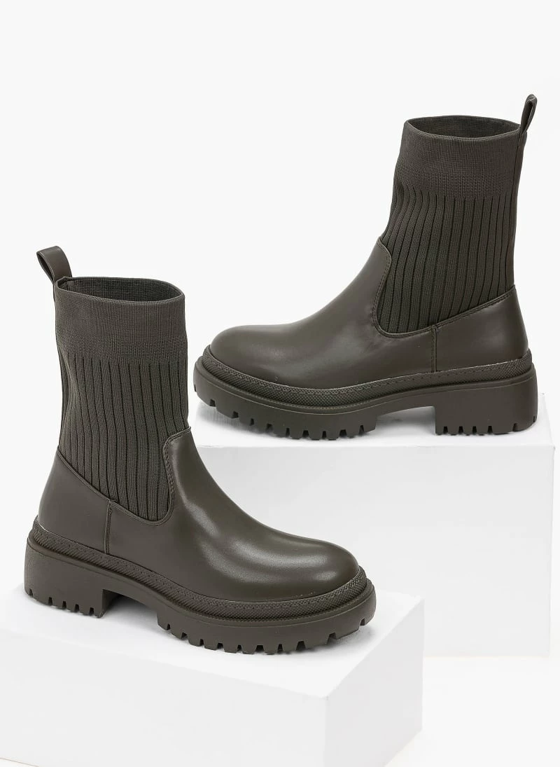 Νέος 👏 The Fashion Project Μποτάκια κάλτσα – Χακί 😀