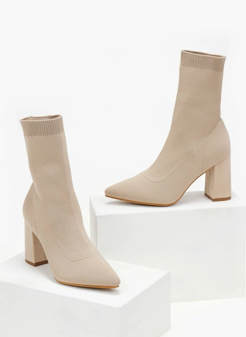 Προϋπολογισμός 🤩 The Fashion Project Μποτάκια κάλτσα με εφαρμοστή γάμπα – Μπεζ 💯