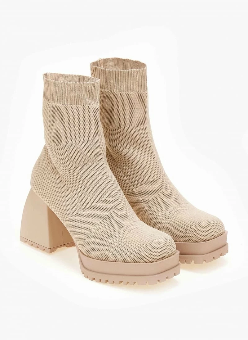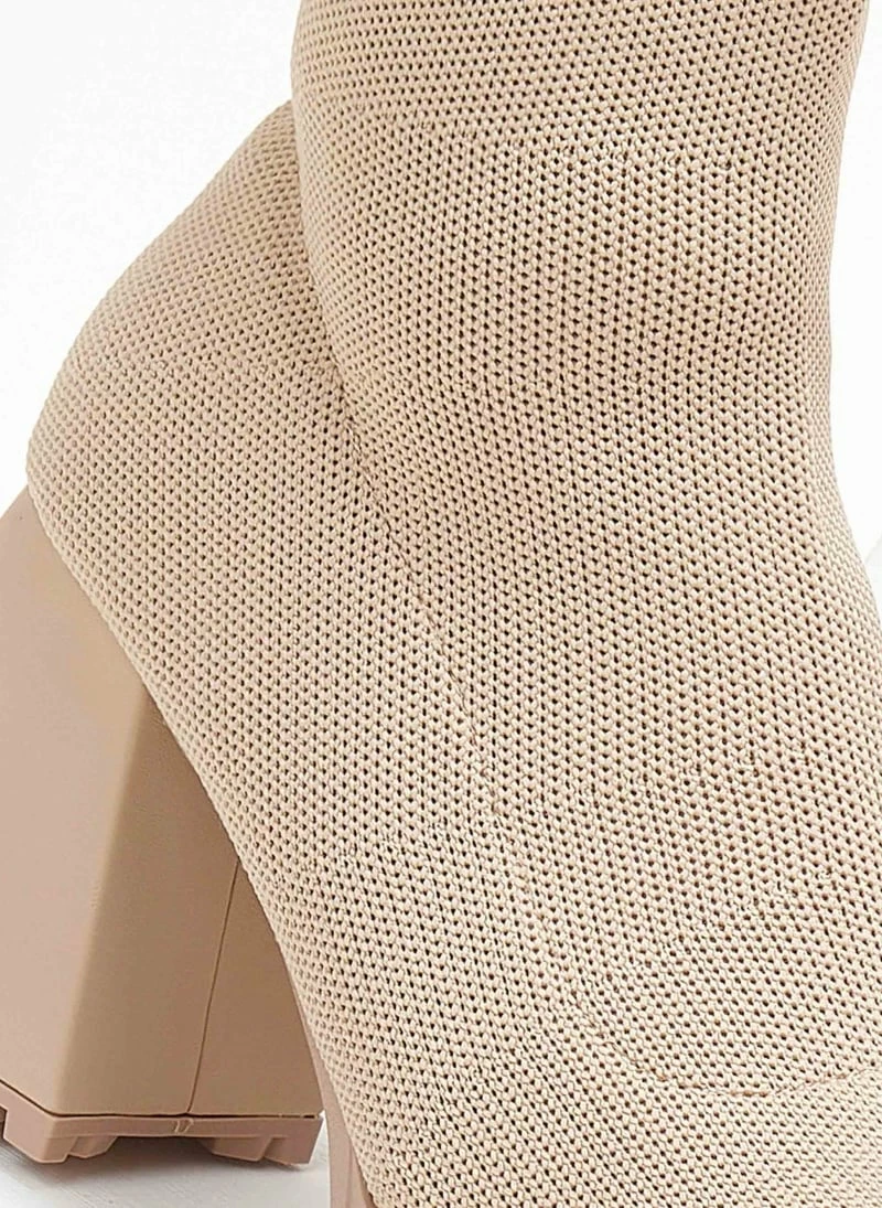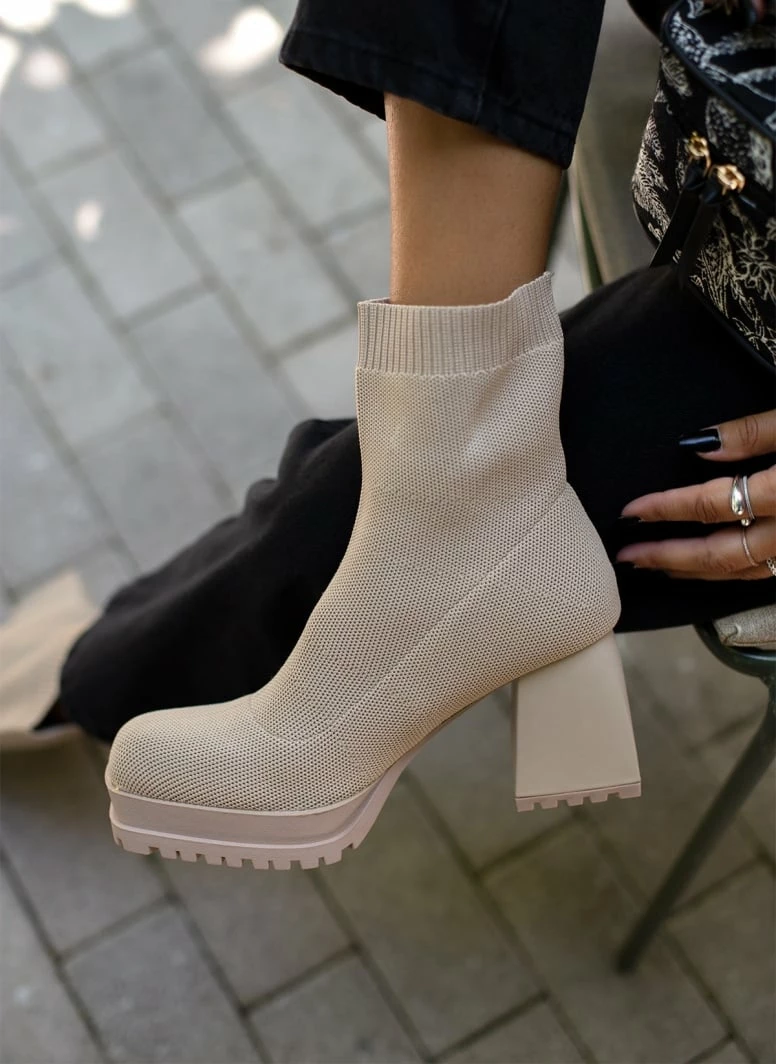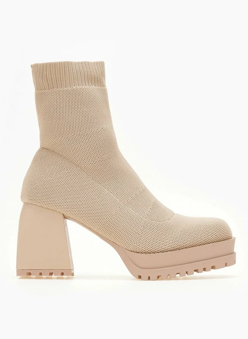 Η καλύτερη συμφωνία 🔔 The Fashion Project Μποτάκια κάλτσα με ιδιαίτερο τακούνι – Μπεζ 🎉