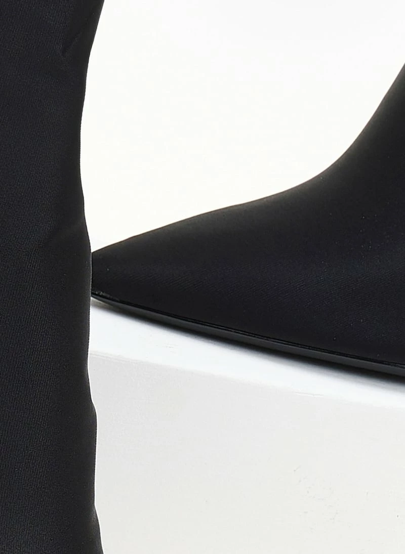 Μυτερά μποτάκια τύπου κάλτσα. Έχουν ψηλό λεπτό τακούνι καμπάνα.