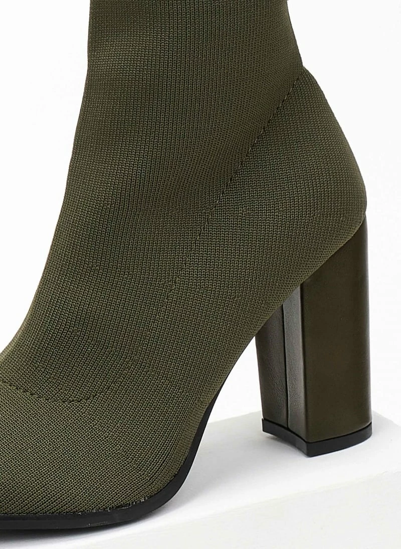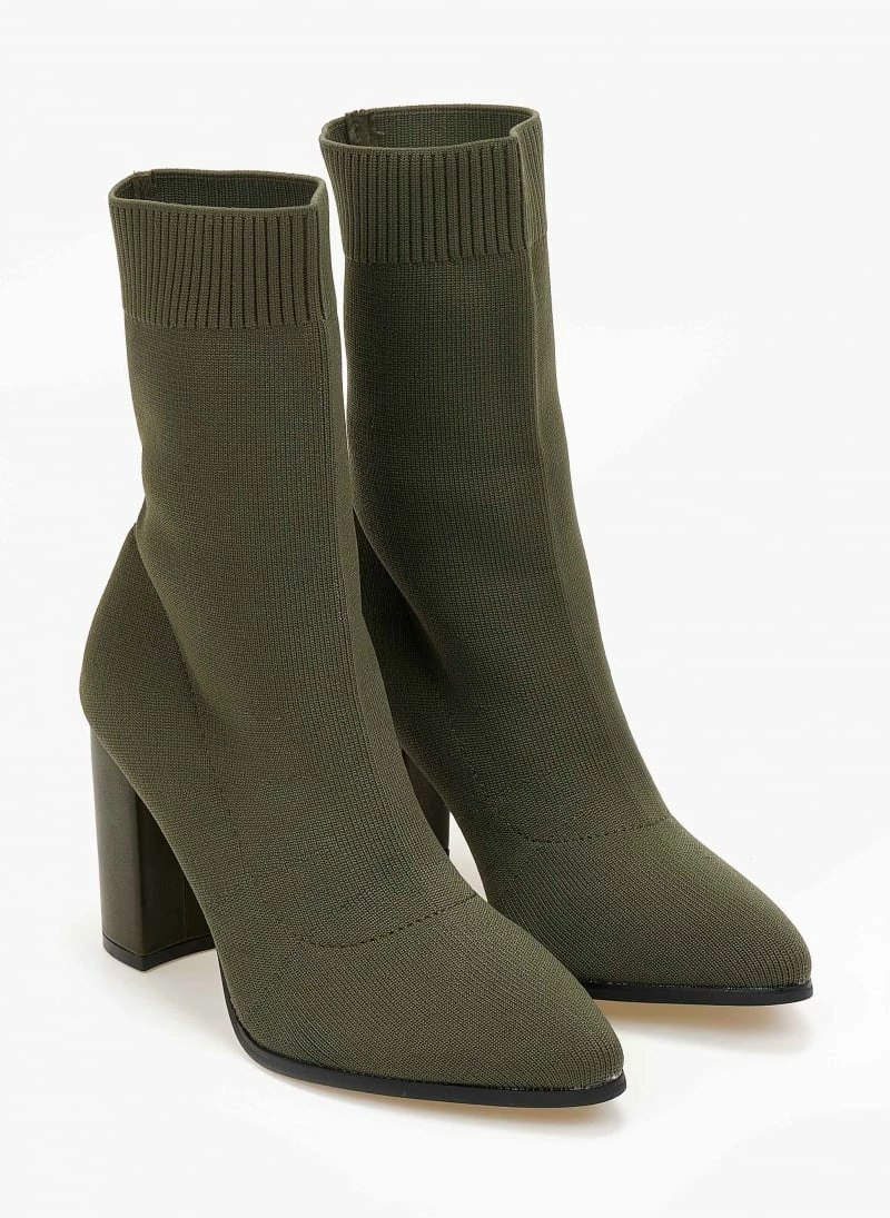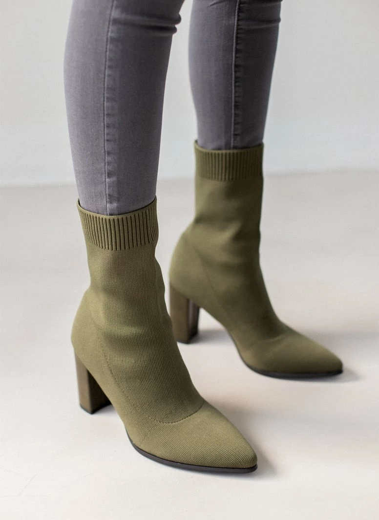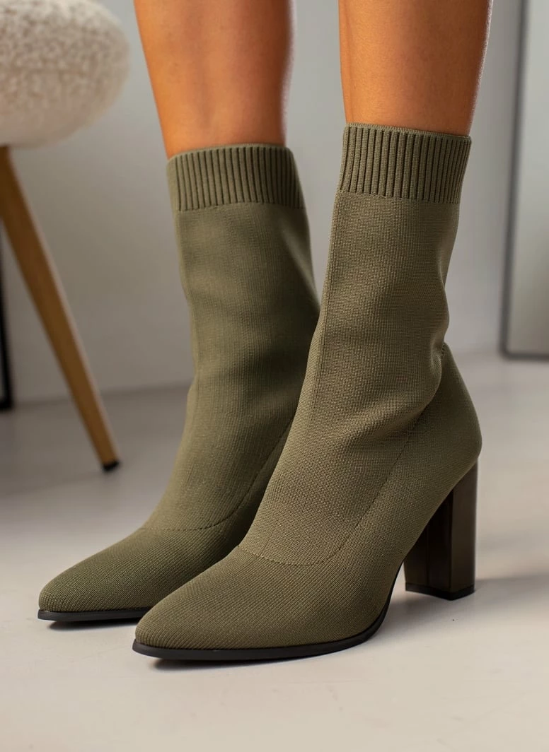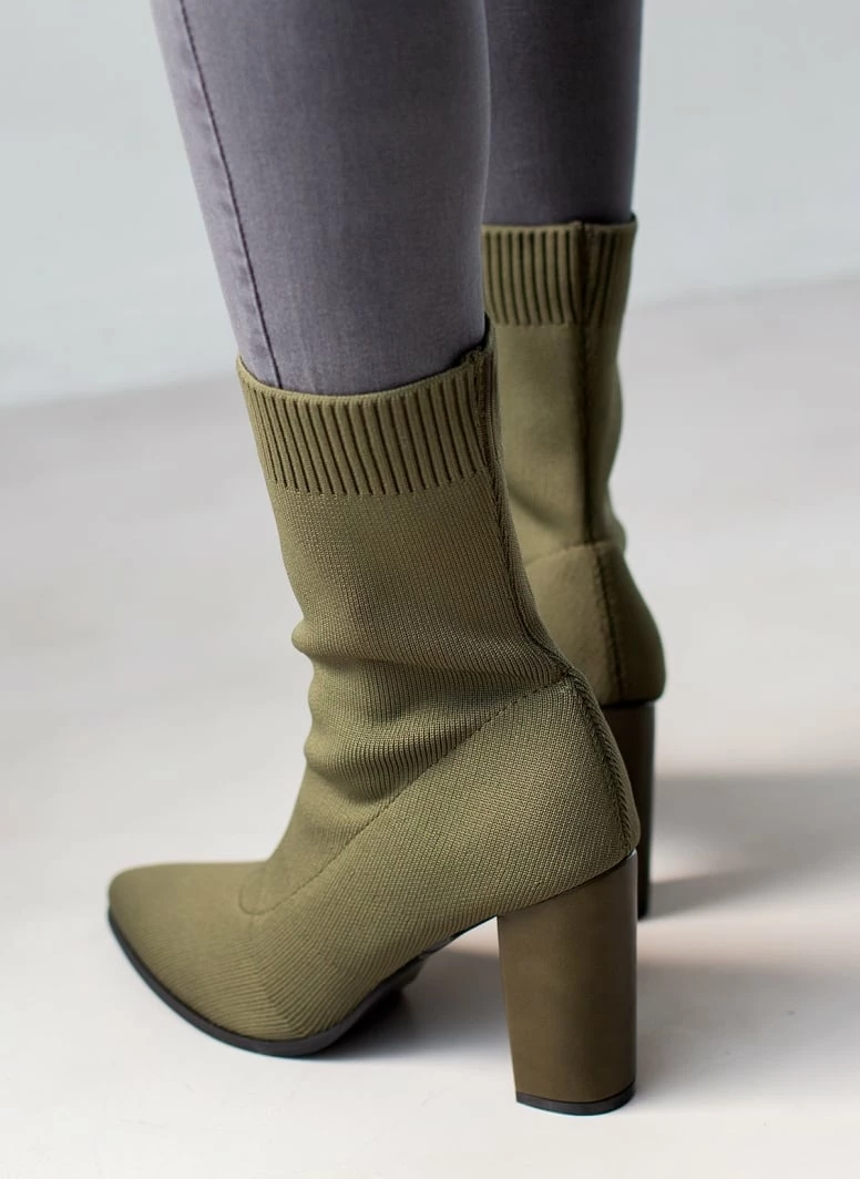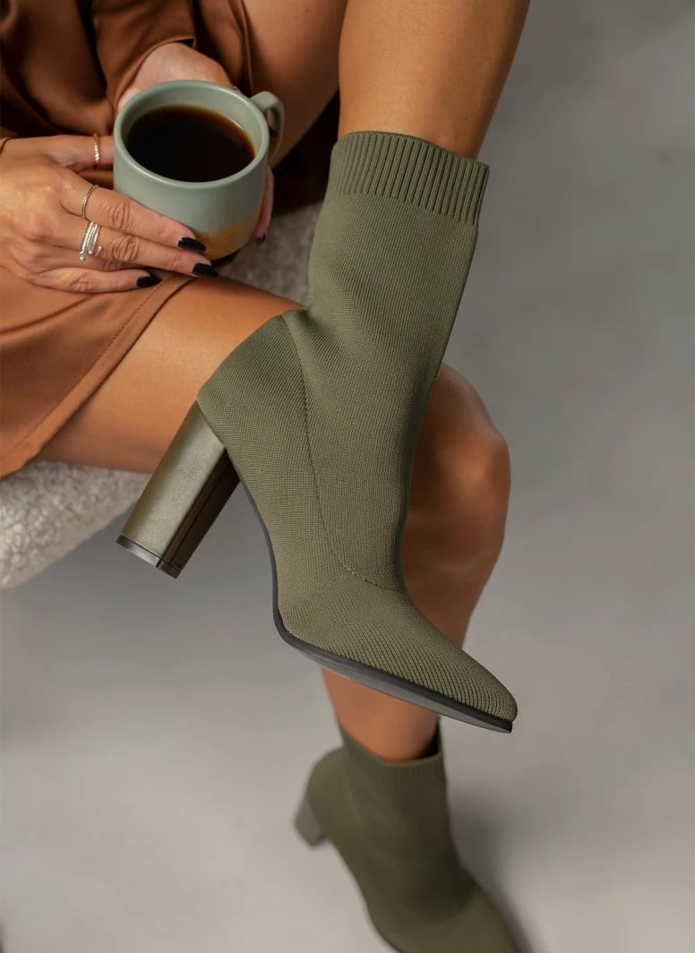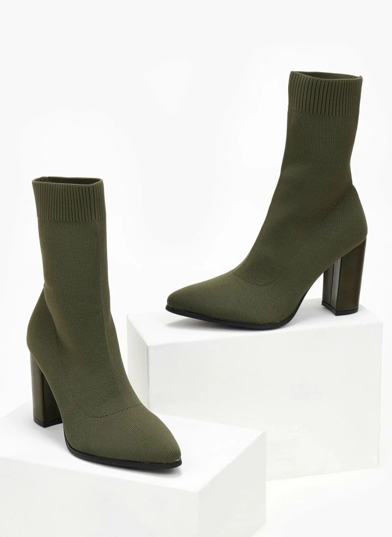 Ολοκαίνουργιο 😀 The Fashion Project Μποτάκια κάλτσα με ψηλό τακούνι – Λαδί ⌛