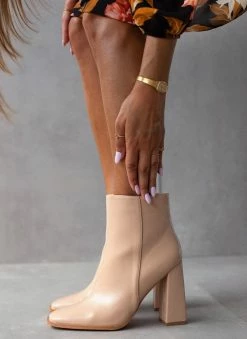 Flash Sale 👍 The Fashion Project Μποτάκια καρέ με εξωτερική ραφή – Nude ✨