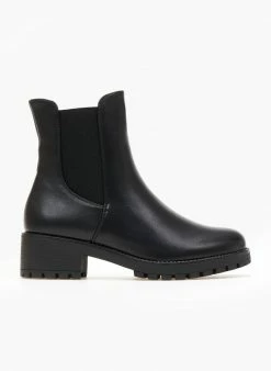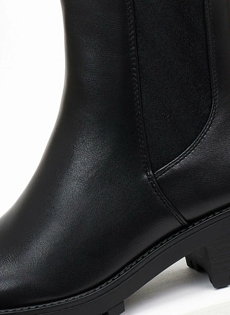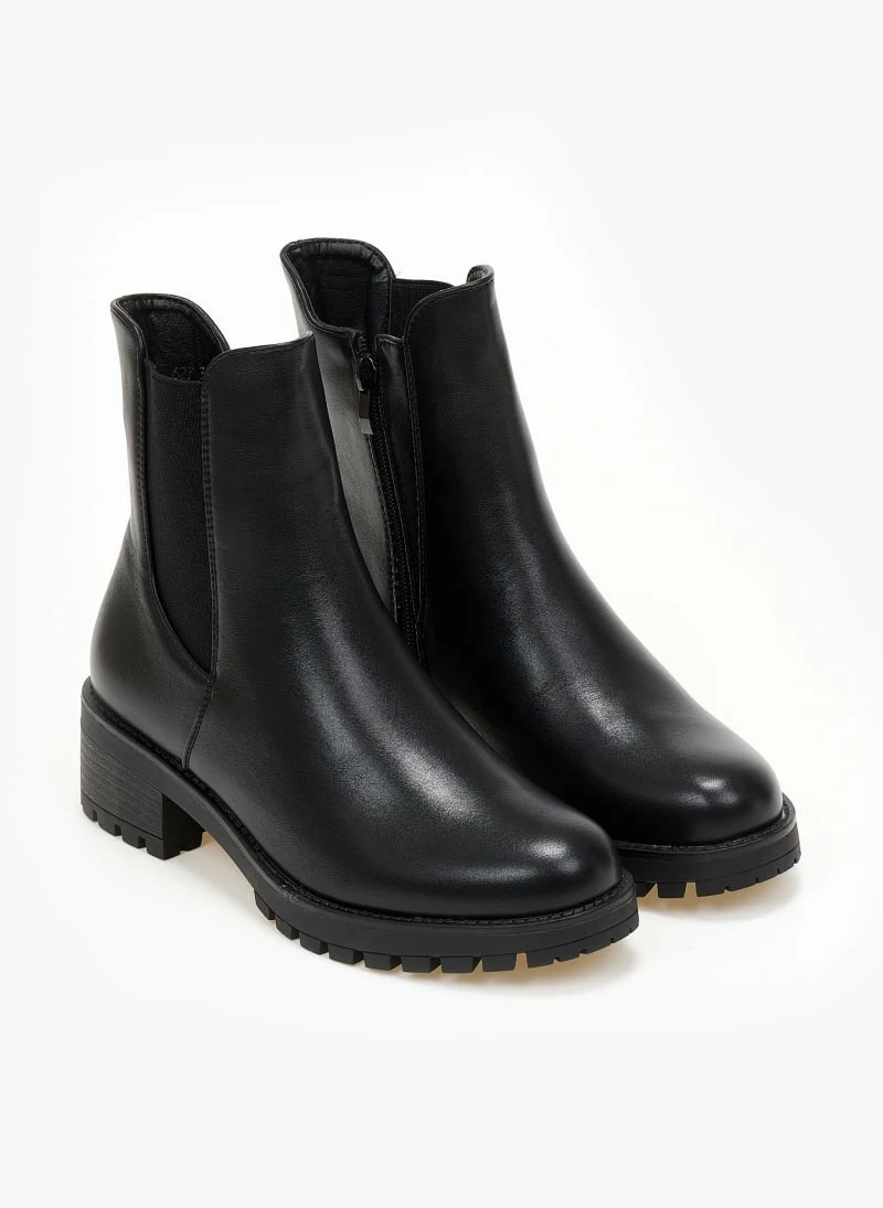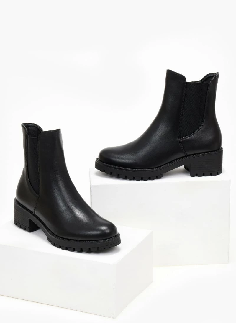 Μποτάκια chelsea με τρακτερωτή σόλα. Έχουν λάστιχο στην εξωτερική τους πλευρά. Στρογγυλή γραμμή.
