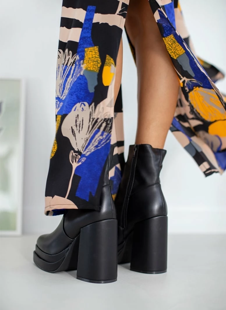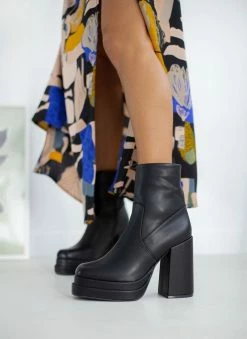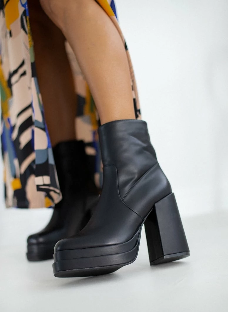 Μποτάκια με ψηλή φιάπα και χοντρό τακούνι. Έχουν φερμουάρ στην εσωτερική τους πλευρά.